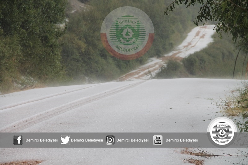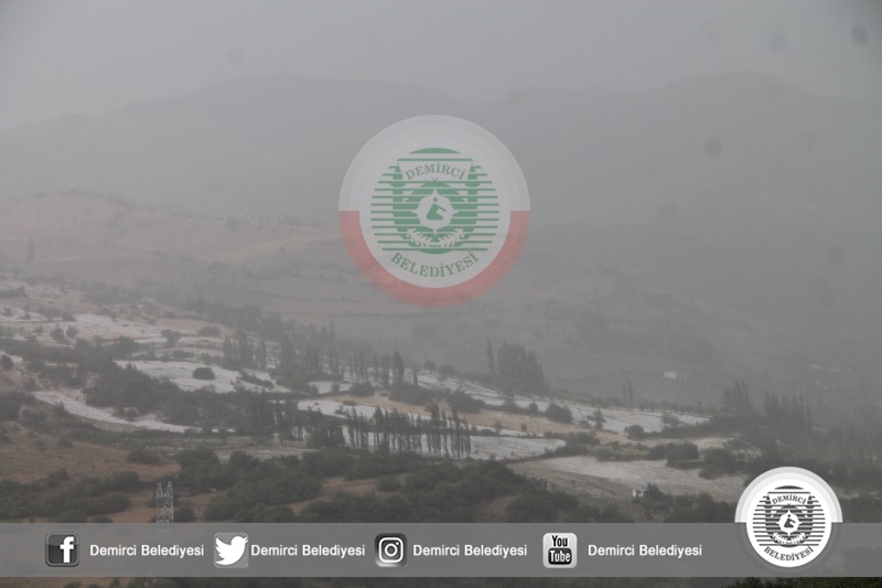 Demirci ilçesinde etkili olan sağanak yağmur ilçenin yüksek kesimlerde de şiddetli dolu yağışı görüldü. İlçeye bağlı Akdere mahallesinde öğleden sonra başlayan şiddetli yağmur bir süre sonra şiddetli dolu yağışına dönüştü.