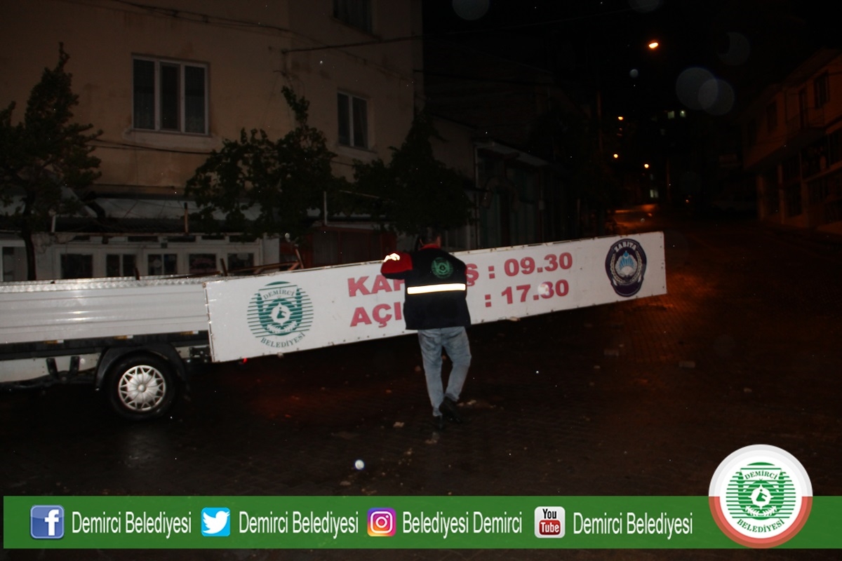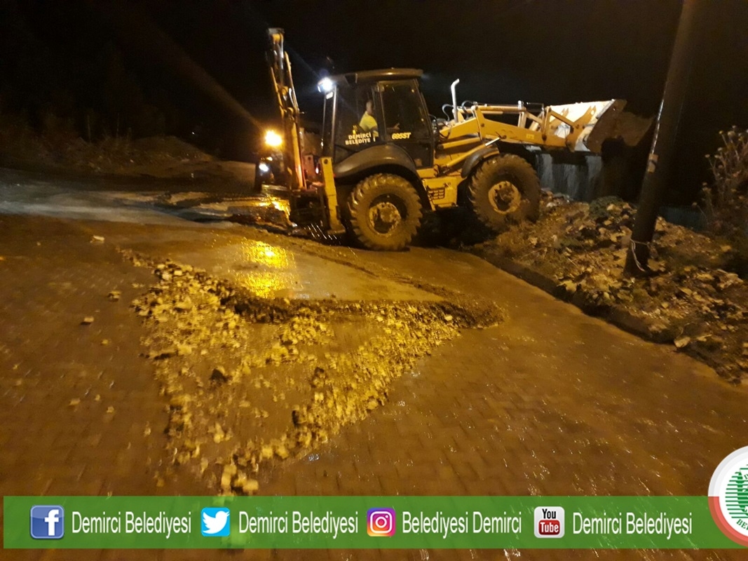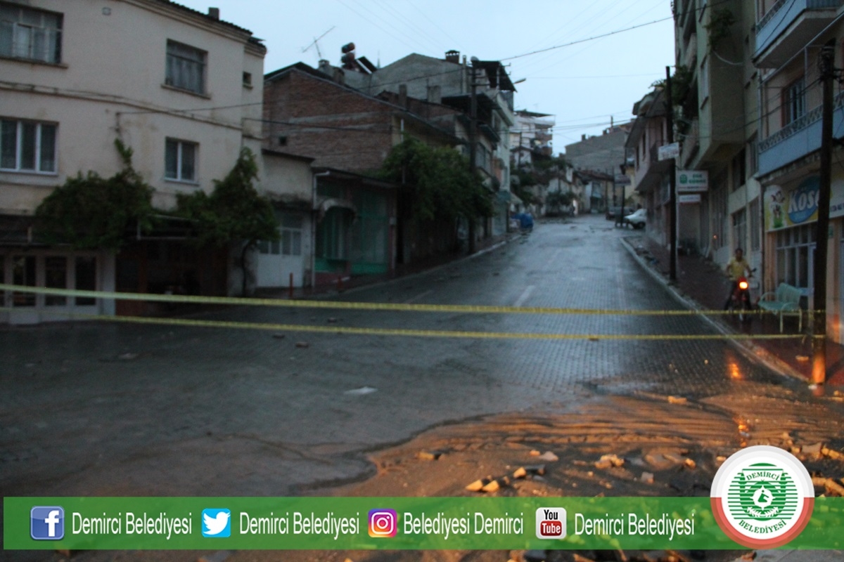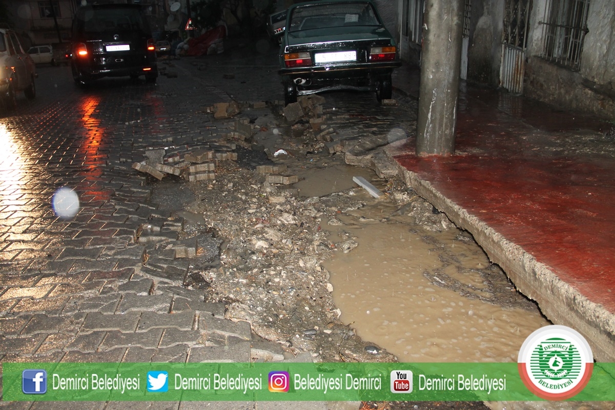 Sağanak yağmurun ardından Demirci Belediyesi ekipleri ilçe merkezinde Yağmur mahallesi düven önü yokuşunda oluşan çökmeler sebebiyle herhangi bir kazan yaşanmaması için çift yönlü olarak yolu trafiğe kapattılar.