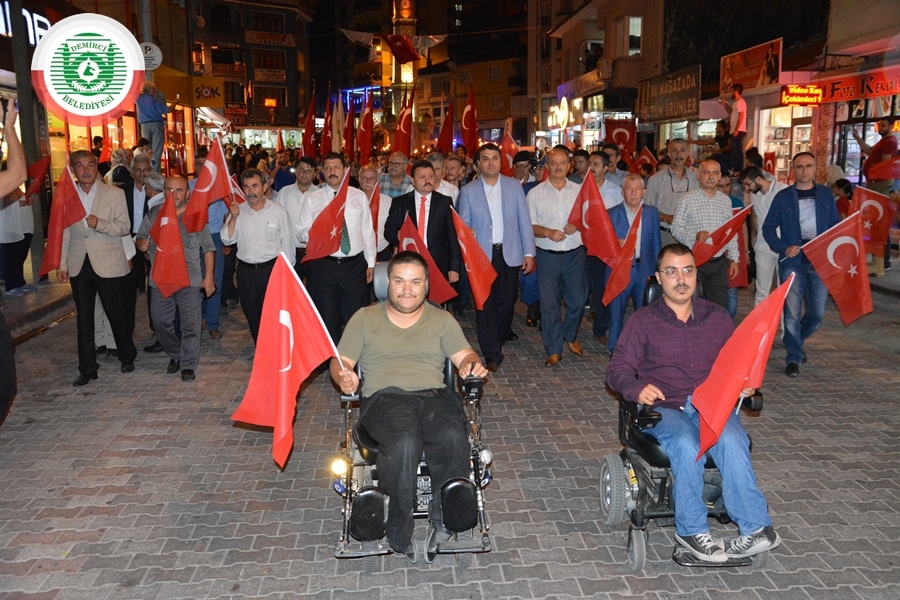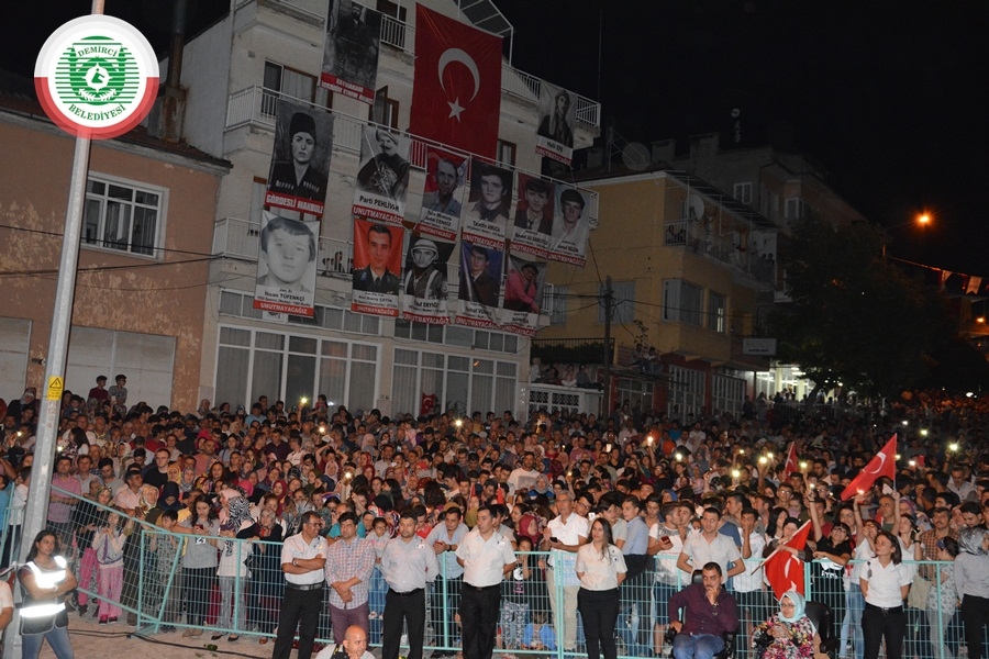 Yürüyüşün ardından Demirci Belediyesi hizmet binası önünde düzenlenen anma programına ve konsere Demirci Kaymakamı Mutlu Akyol, eşi Oya Akyol, Belediye Başkanı Selami Selçuk, eşi Güzide Selçuk, Belediye Başkan Yadımcısı Mustafa Ünlü, AK Parti İlçe Başkanı Mehmet Acar, MHP İlçe Başkanı Yılmaz Ayhan, Belediye Meclis Üyeleri, Muhtarlar, Türkiye İzcilik Federasyonu İzcileri, Gaziler ve Çok sayıda vatandaş katıldı.