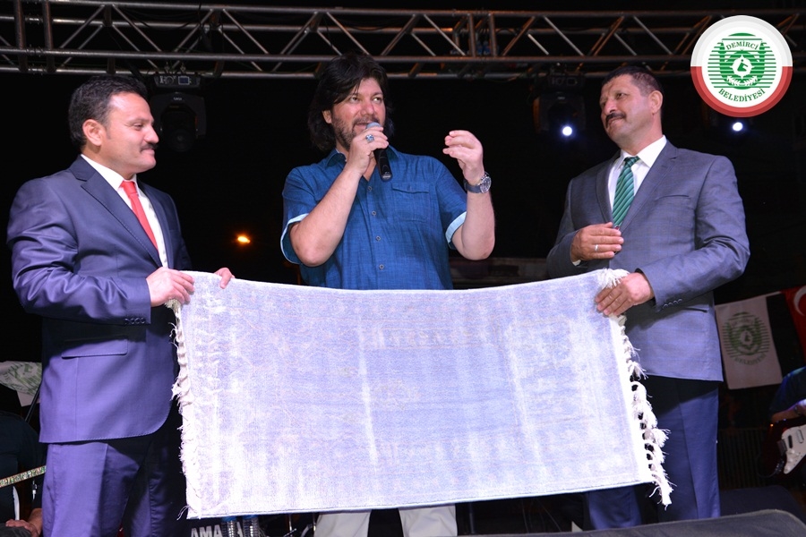 Konserde Sanatçı Ahmet Şafak’a Kaymakam Mutlu Akyol tarafından el dokuma Demirci Halısı, Belediye Başkanı Selami Selçuk tarafından çiçek, AK Parti İlçe Başkanı Mehmet Acar ve MHP İlçe Başkanı Yılmaz Ayhan tarafından Demirci Belediyesinin kültür yayınları hediye edildi.