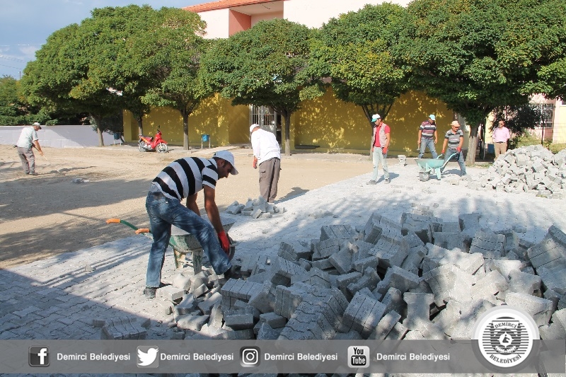 Öte yandan İlçemiz 75.Yıl Alime Paşa Ortaokulu bahçesinde de yeni eğitim öğretim dönemi öncesinde parke taşı ve çevre düzenlemeleri hızla devam ediyor.