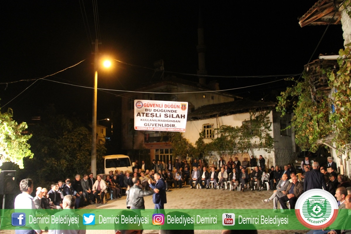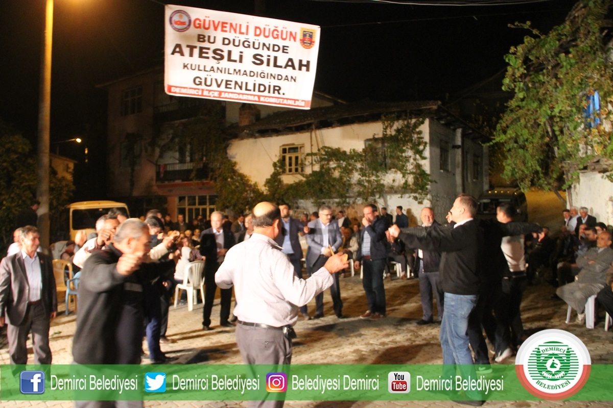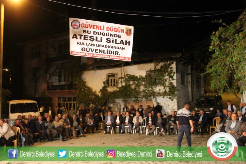 İlçe Jandarma Komutanlığı bu kapsamda Demirci Tekeler Mahallesinde Çetintaş ve Akın ailelerinin düğün merasiminde mahalle meydanına kurulan düğün eğlencesinde alana ’Bu düğünde ateşli silah kullanılmadığından bu düğün güvenlidir’ pankarı asılarak kampanyanın tanıtımı yapıldı.