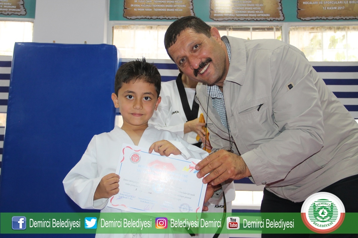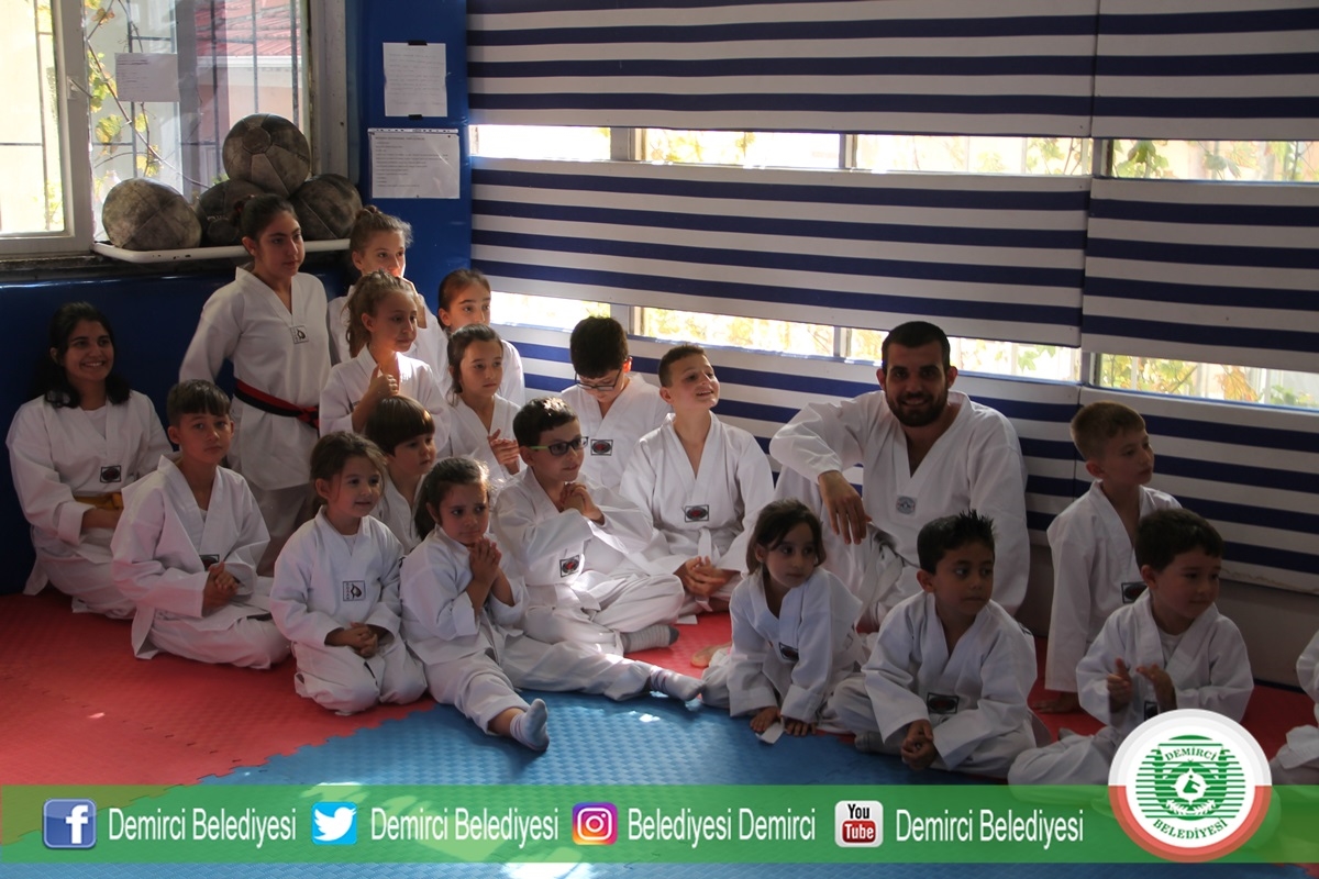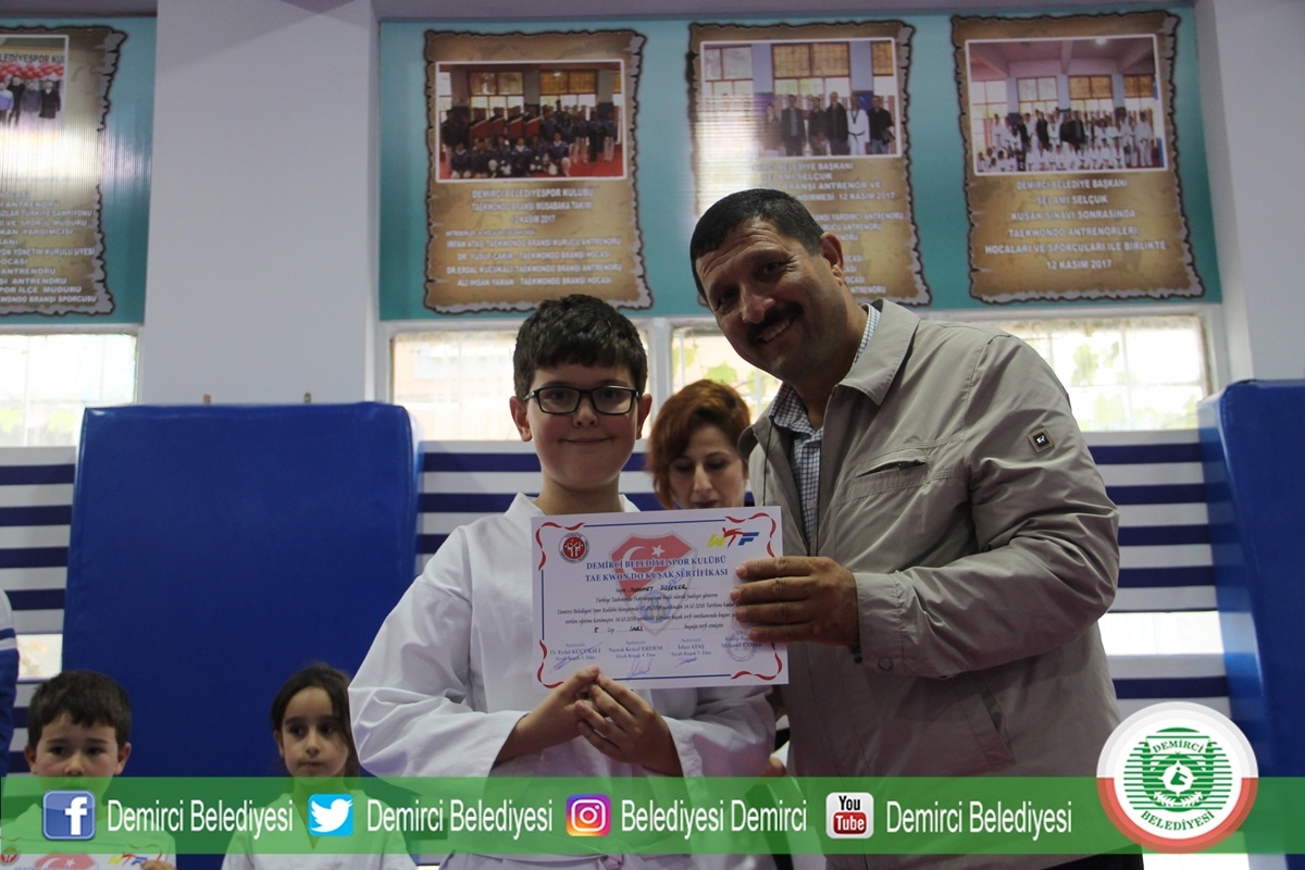 Taekwondo spor salonunda düzenlenen kuşak sınavına Demirci Belediye Başkanı Selami Selçuk, Gençlik Hizmetleri ve Spor İlçe Müdürü Bilal Yılmaz, Hokey Milli Antrenörü Serkan Şen, sporcular ve sporcu aileleri katıldı.