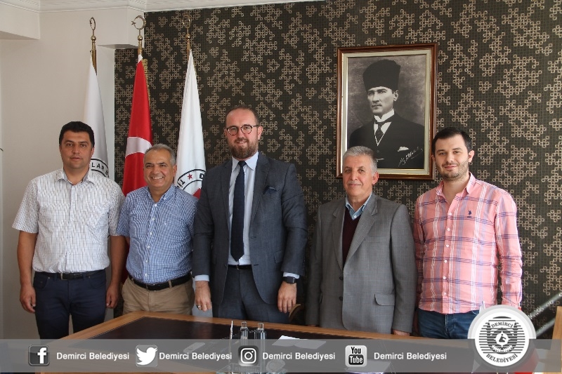 Demirci Ticaret ve Sanayi Odasında basın açıklamasında Başkan Nurettin Kelem'in yanı sıra, Yönetim Kurulu Üyeleri Ali Özkuyumcu, Ahmet Fatih Dilşeker, Hüseyin Özcan ve Demirci TSO Meclis Başkan Yardımcısı Selami Amuca'da yer aldı.