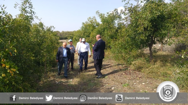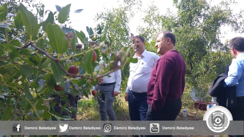 Başkan Selçuk, hünnap üretiminin yapıldığı bahçede üretici Hasan Bulut ile bu türün Demirci'ye kazandırılması ve Demirci'de de yetiştirilmesi için görüşme yaptı.