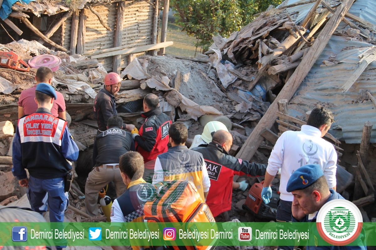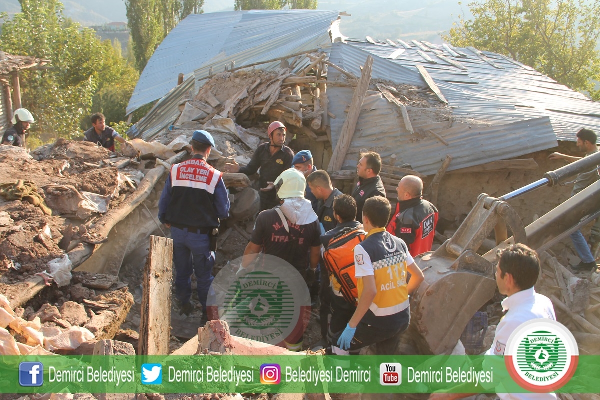 Olay yerine ulaşan Demirci Belediyesi Arama Kurtarma ve İtfaiye ekipleri yaklaşık 2 saat süren yoğun bir çalışma sonucunda göçük altında kalan kadına ulaştılar. Sağlık ekipleri göçük altında kalan kadının yaşamını yitirdiğini tespit etti.