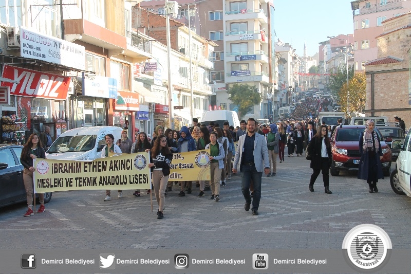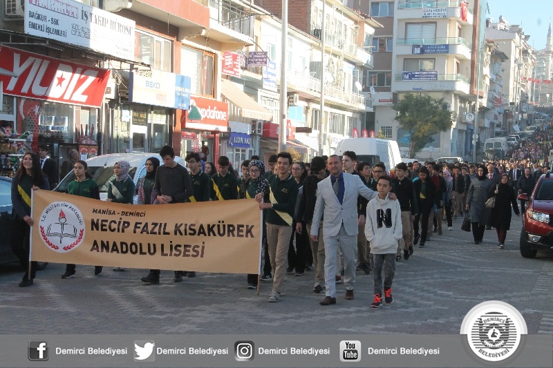 Kaymakam Mutlu Akyol'un konuşmasının ardından öğrenciler günün anlam ve önemini belirten şiirler okudu. Müzik öğretmenleri, Mehmet Ali Kafadar, Onur Çalhan, Sadık Can ve Seval Bozbay Çalhan tarafından Demirci Türküleri seslendirildi.