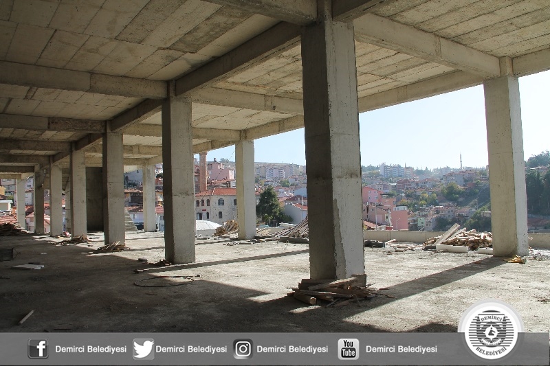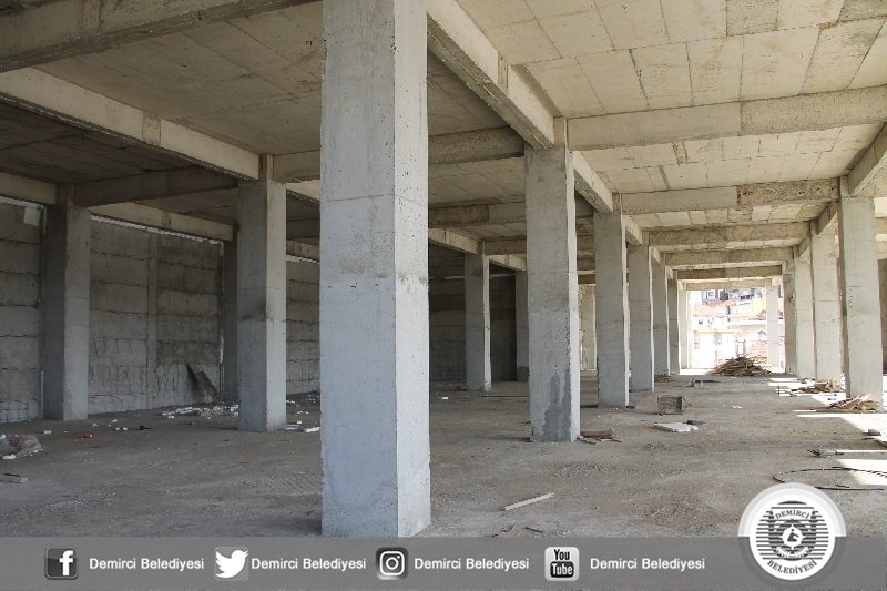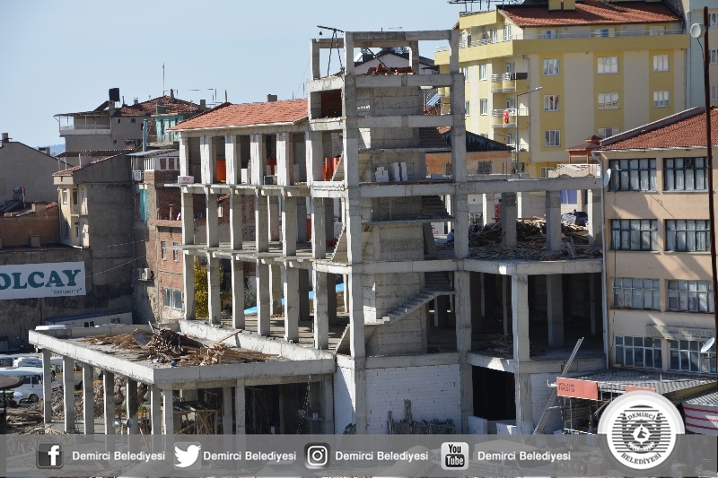 Demirci Belediyesince ilçenin merkezine yapılan içerisinde işyerleri, seyir terası, restorant, otopark ve marketin yer aldığı kent merkezi inşaatında iç cephe düzenlemelerine başlandı.