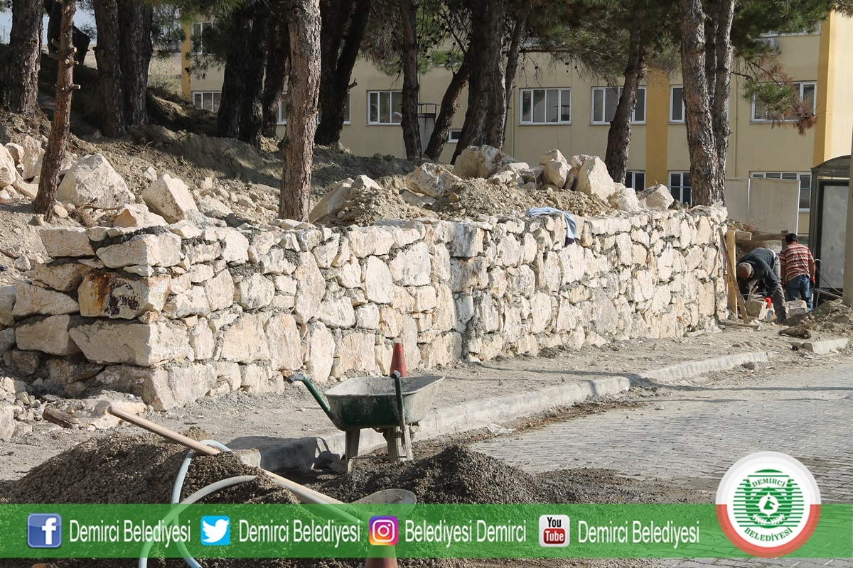 Fen İşleri ekiplerince Akıncılar Kuran Kursunun yan tarafından başlayarak 100 metre uzunluğunda, yaklaşık 1.5 metre taş duvar örme çalışmalarına başlandı.