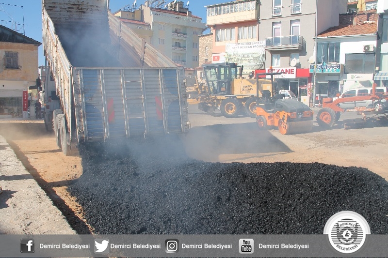 Demirci Belediyesi ilçe merkezinde başlattığı asfalt hamlesini sürdürüyor.