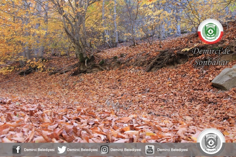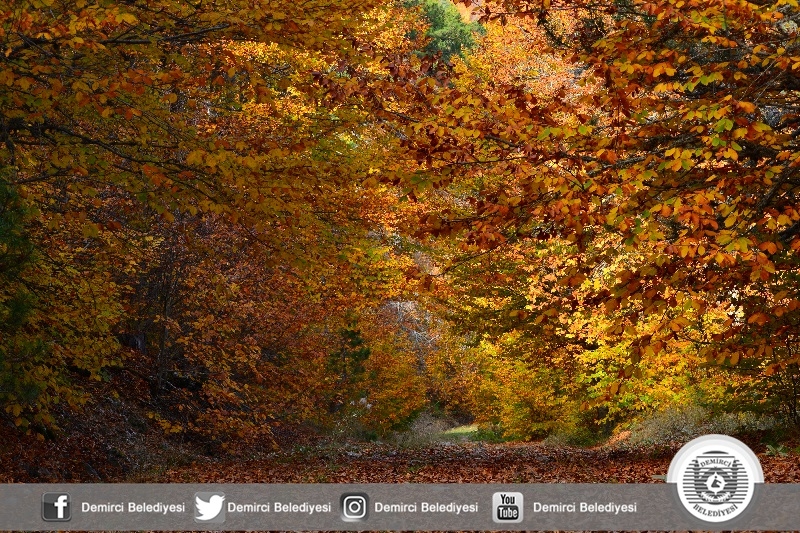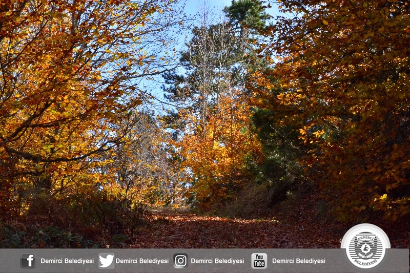 Demirci BİN 500 rakımlı Akçakertik ve Büyükyayla Mevkiinde ağaçlardan sararak dökülen yaprakların oluşturduğu sonbaharda kartpostallık görüntüler ortaya çıkıyor.