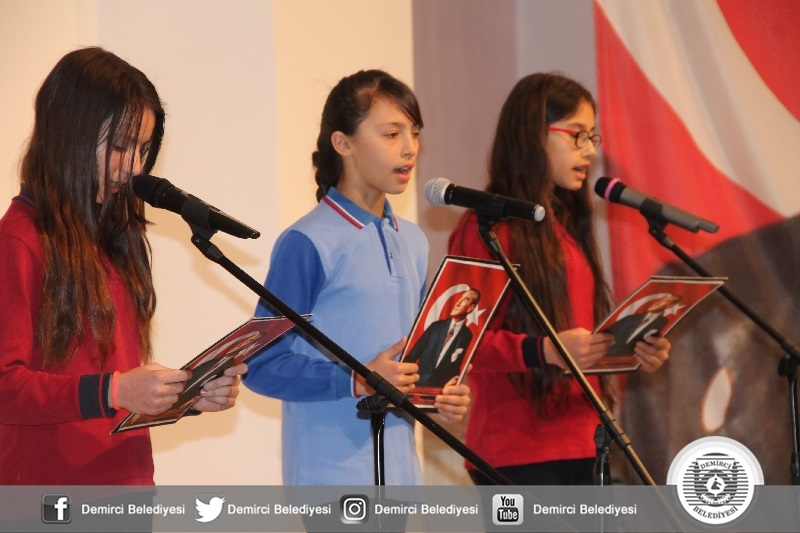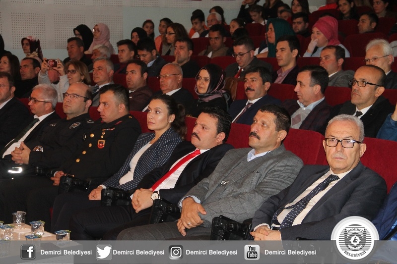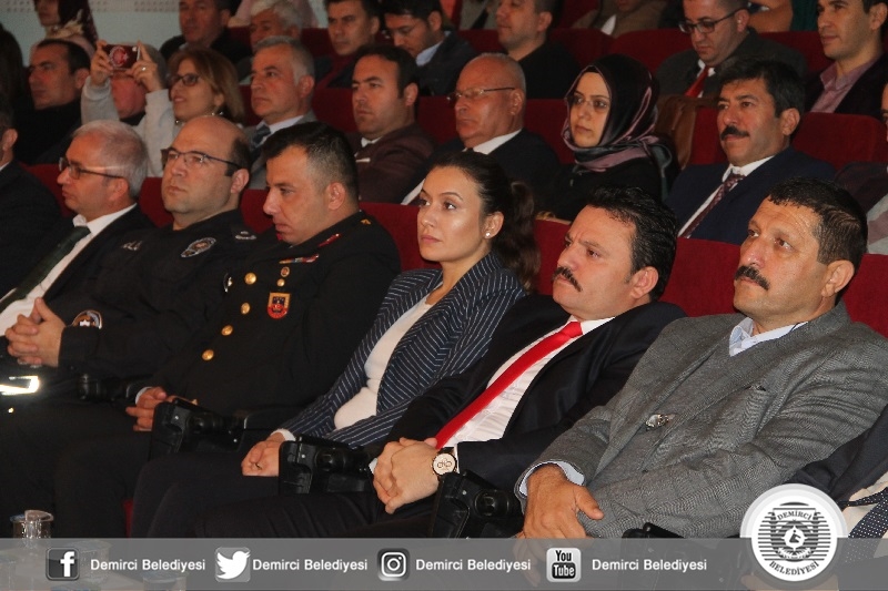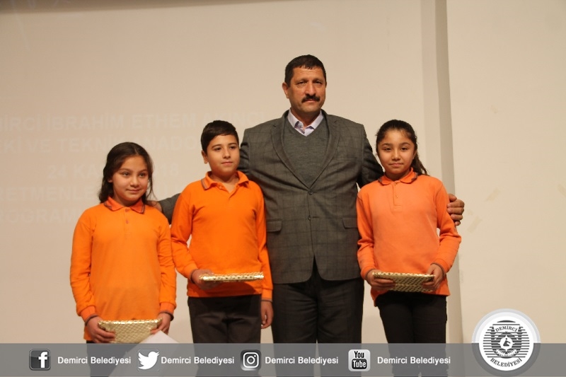 26 Kasım Pazartesi günü Demirci Ticaret ve Kültür Merkezinde İbrahim Ethem Akıncı Mesleki ve Teknik Anadolu Lisesi Müdürlüğü koordinesinde gerçekleşen Öğretmen Günü kutlama programına Demirci Kaymakamı Mutlu Akyol, Belediye Başkanı Selami Selçuk, İlçe Jandarma Komutanı Teğmen Okan Doğan, İlçe Emniyet Amiri Mehmet Muhammet Solak, İlçe Milli Eğitim Müdürü Yüksel Kocabaş, Daire Amirleri, Öğretmenler ve öğrenciler katıldı.