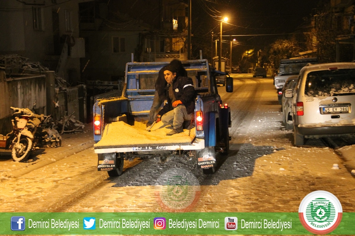 Demirci Belediyesine bağlı Fen İşleri ekipleri de kar yağışı ile birlikte çalışmalara başladı.