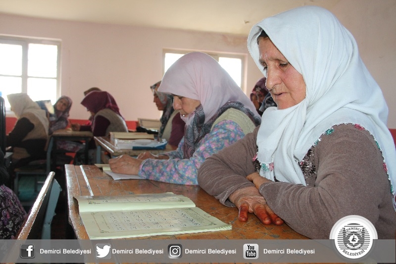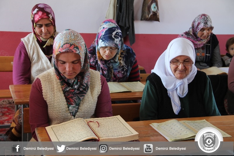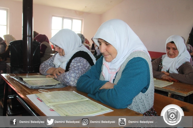 Demirci İlçe Müftüsü Mustafa Kocagöz " Diyanet İşleri Başkanlığımızca İlçe merkezi ve kırsal mahallelerimizde kuran kurslarımızı hizmete açtık. Ekim ayında 30 kursumuzda 850 kadın öğrencimiz Elif Be ve Kuran-ı Kerim eğitim alıyor. Kurslarımızı zaman zaman denetliyor, verilen eğitimleri yerinde görüyoruz. Özellikle kadınlarımız kurslarımıza büyük bir ilgi gösteriyor. İlçe Müftülüğümüz olarak gelen talebe göre kurs sayımızı arttıracağız. Hedefimiz kurslarımıza katılan yaşlılarımıza Kuran-ı Kerim'i en iyi şekilde öğretebilmek "dedi.