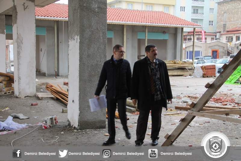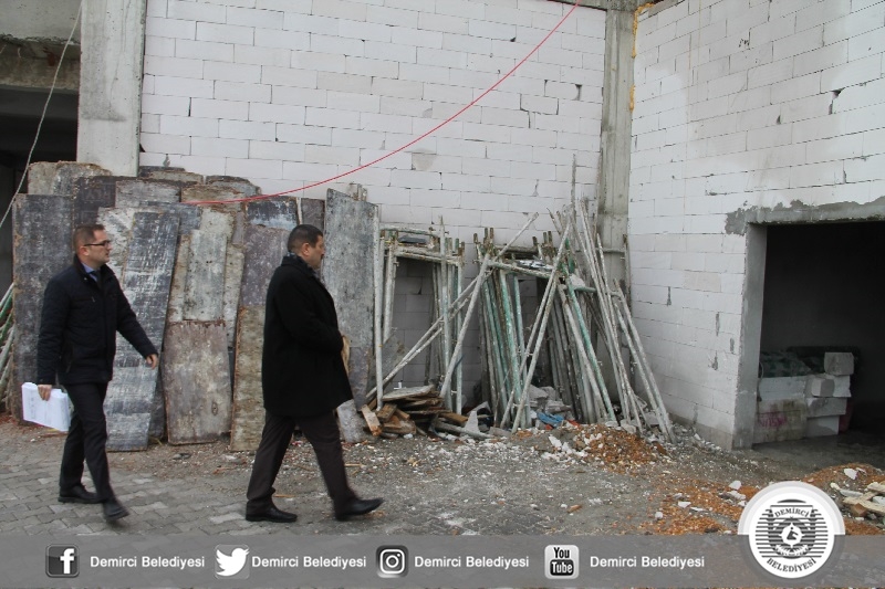 Demirci Belediyesince İlçemiz Cumhuriyet meydanı alanına yapılan Kent Merkezi inşaatı hızla devam ederken, Başkan Selami Selçuk'ta inşaatta incelemelerde bulundu.