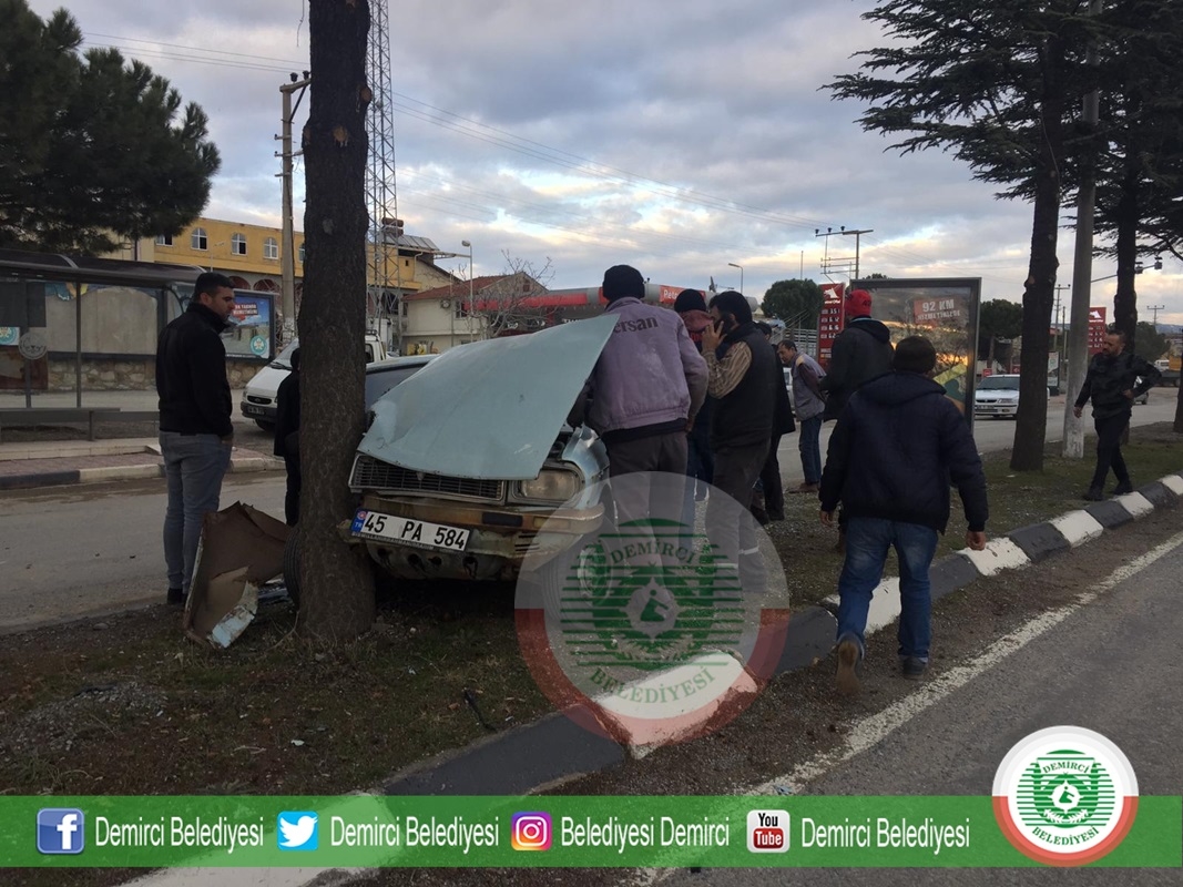 Demirci'de akşam saatlerinde meydana gelen tek taraflı trafik kazası meydana geldi.