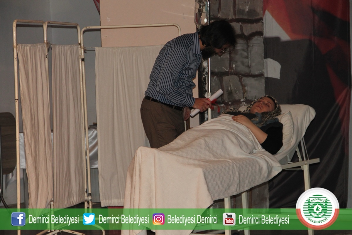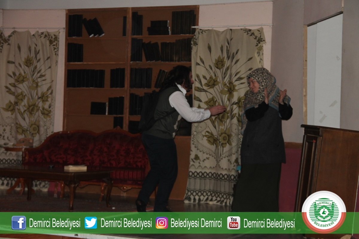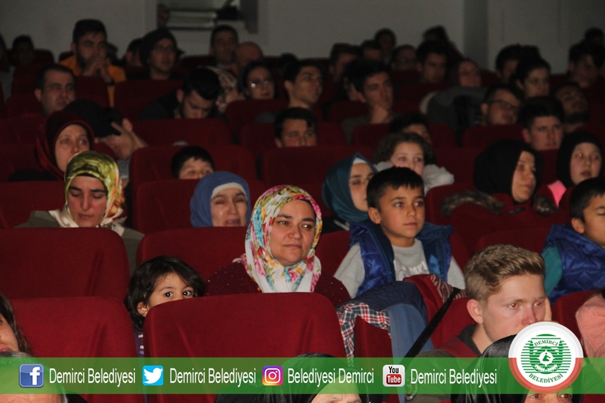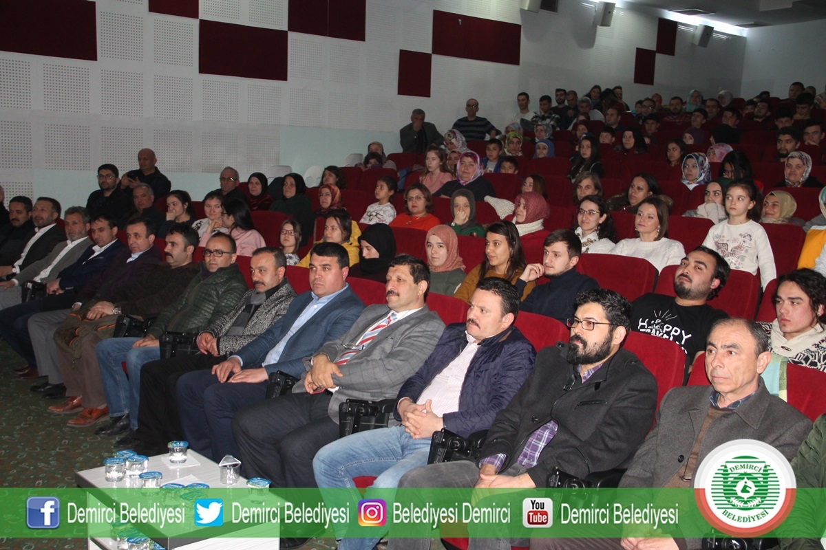 27 Şubat 2019 Çarşamba günü Demirci Ticaret ve Kültür Merkezi konferans salonunda yapılan tiyatro oyununa Demirci Kaymakamı Mutlu Akyol, Belediye Başkanı Selami Selçuk, İlçe Protokolü, öğrenciler ve vatandaşlar katıldı.