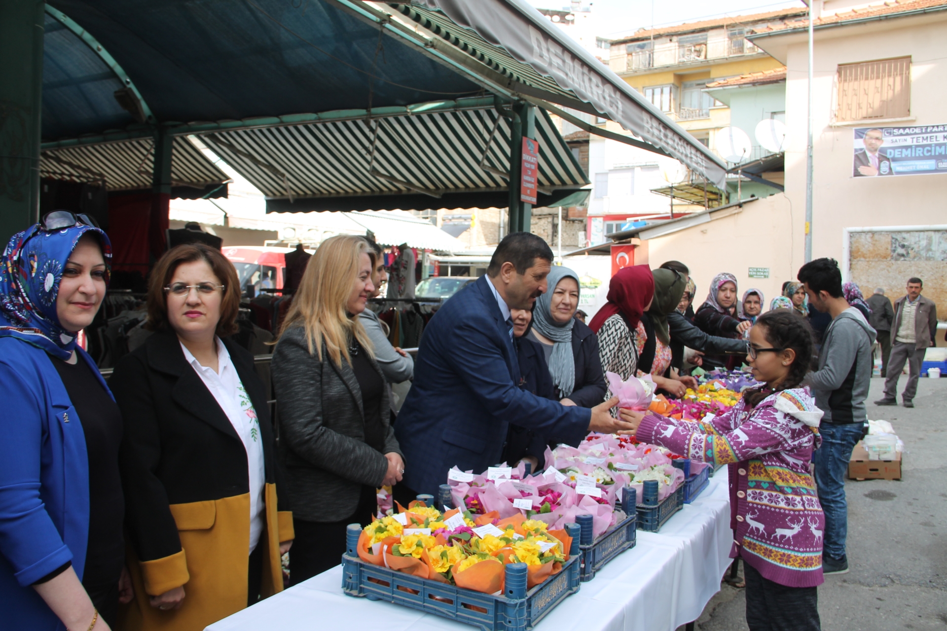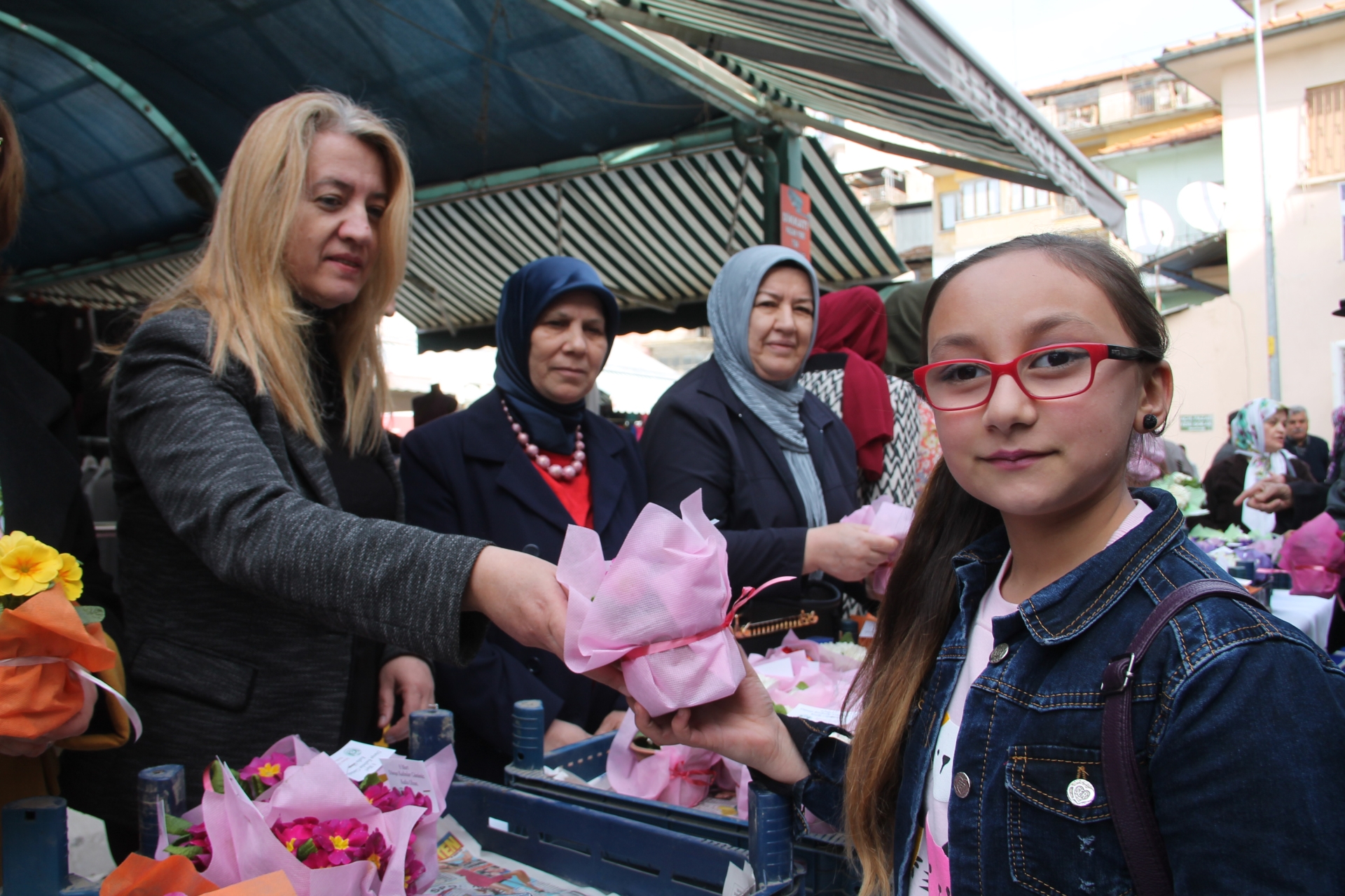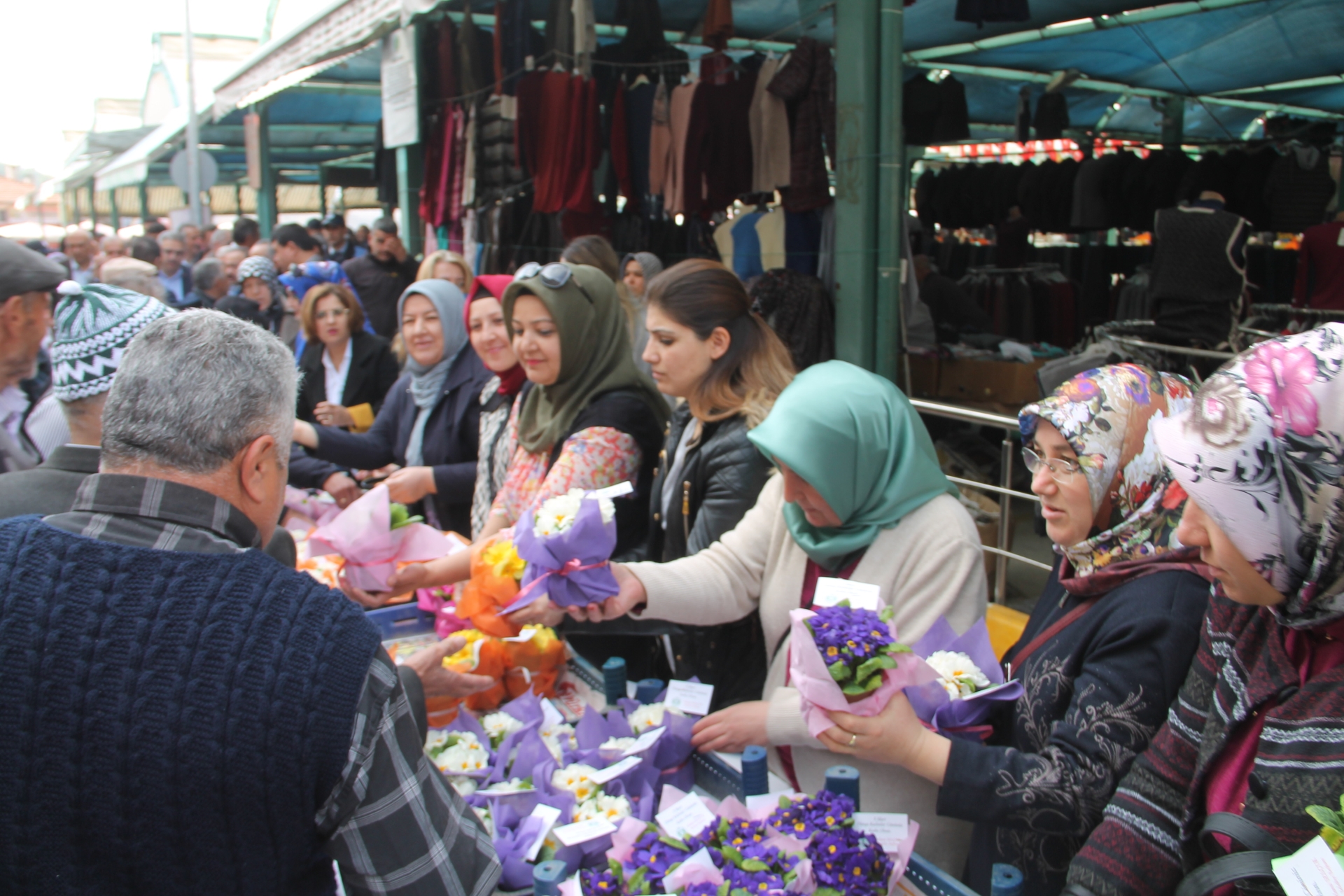 09 Mart 2019 Cumartesi günü de İlçemiz pazaryeri girişinde kurulan stanta Demirci kadınlara Dünya Kadınlar günü anısına saksıda çulha çiçeği, yazma ve bez pazar çantaları hediye edildi.
