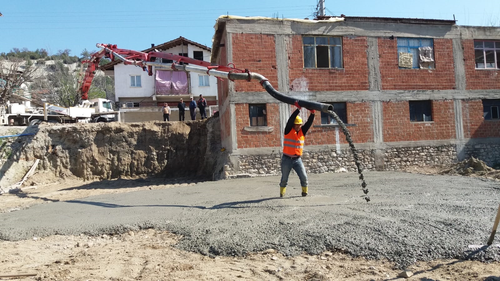 Fen İşleri ekiplerince Mahalle Muhtarlığının gösteri alanda yapılan alan düzenlemesinin ardından, Gümele Çok Amaçlı Salonun temeli atıldı.