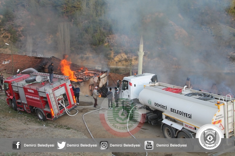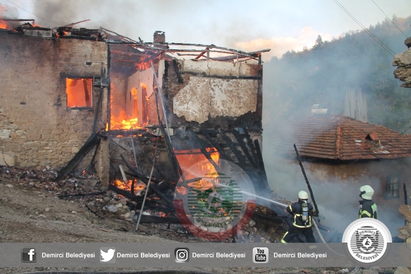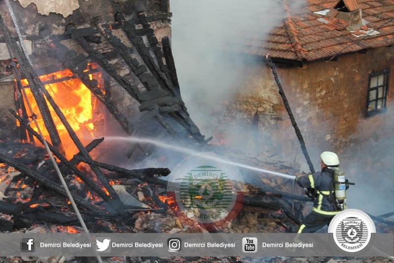 Demirci'de bir evin bacasından çıkan yangında mahalledeki 5 ev kullanılamaz hale geldi