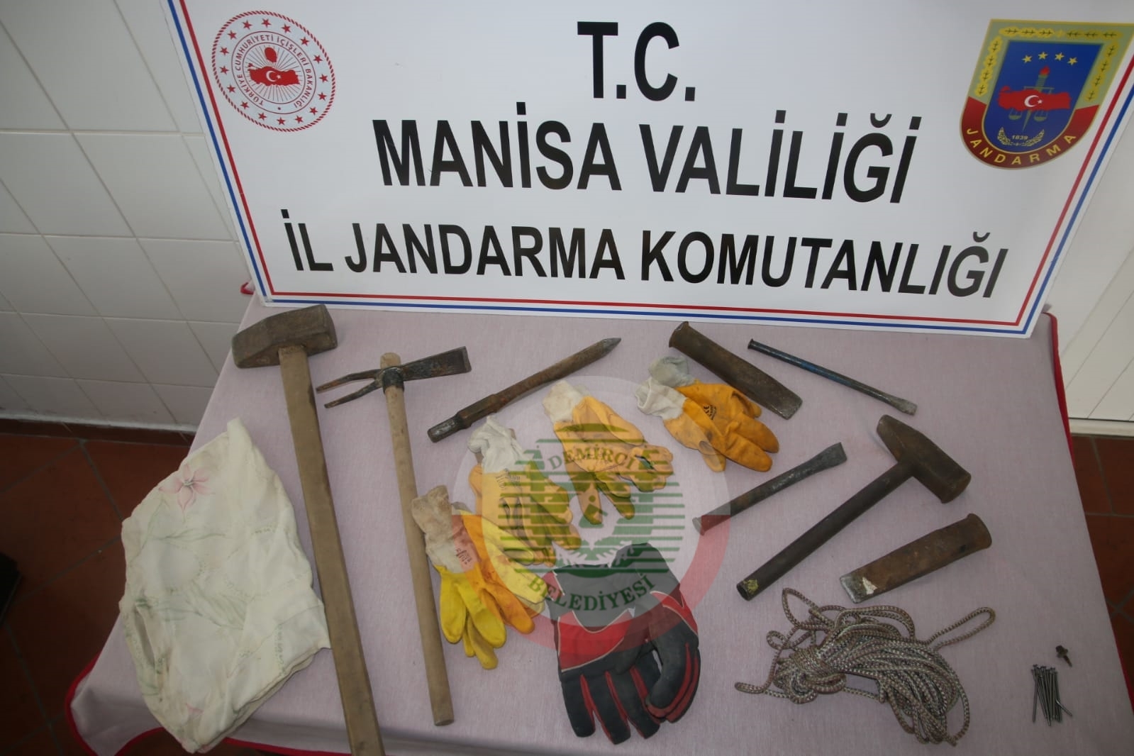 Alınan bilgiye göre Demirci'ye bağlı Durhasan mahallesi kalaba mevkiinde 5 kişinin kaçak kazı yaptığı ihbarını alan İlçe Jandarma Komutanlığı ekipleri, bölgeye operasyon düzenledi.