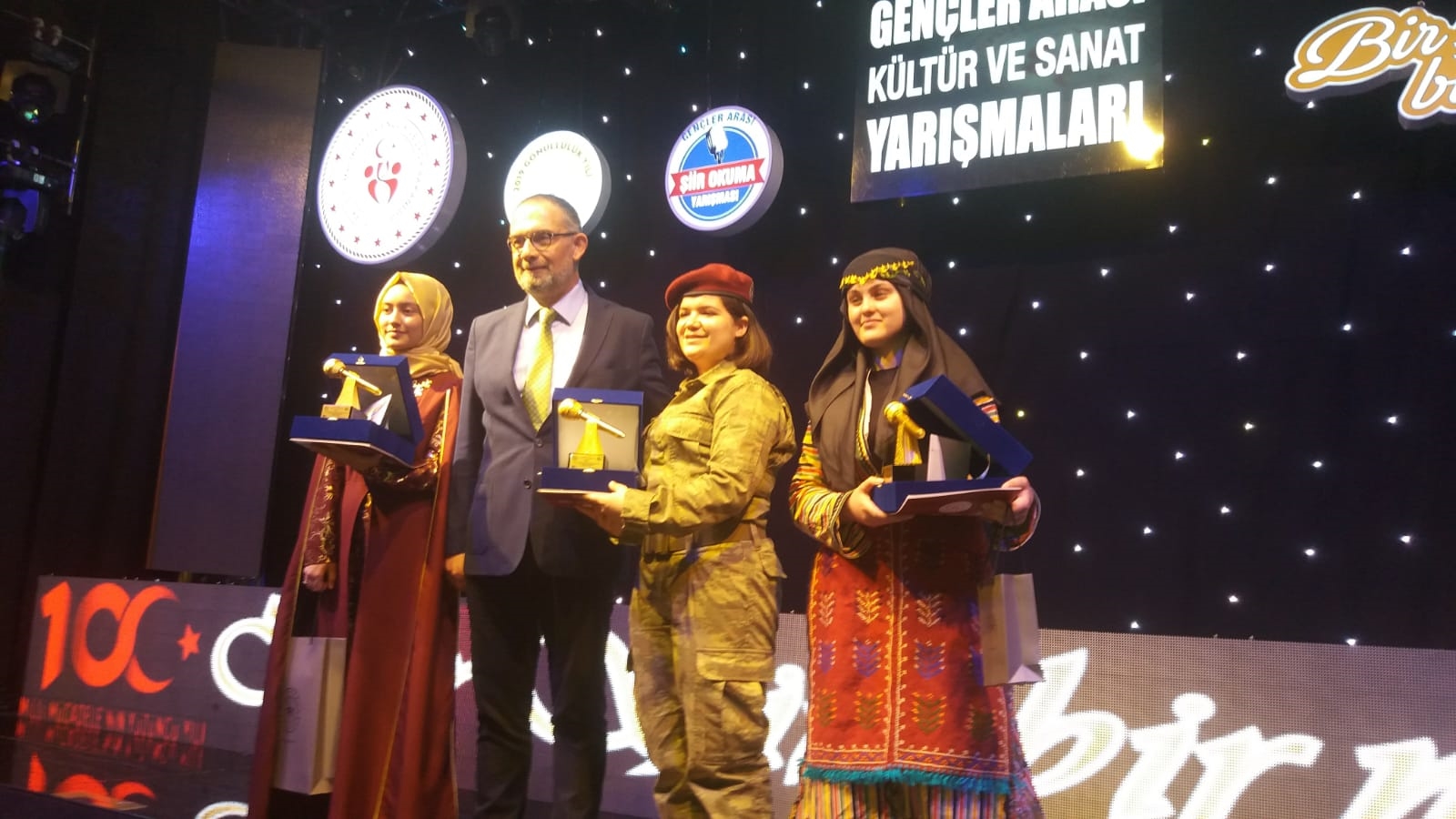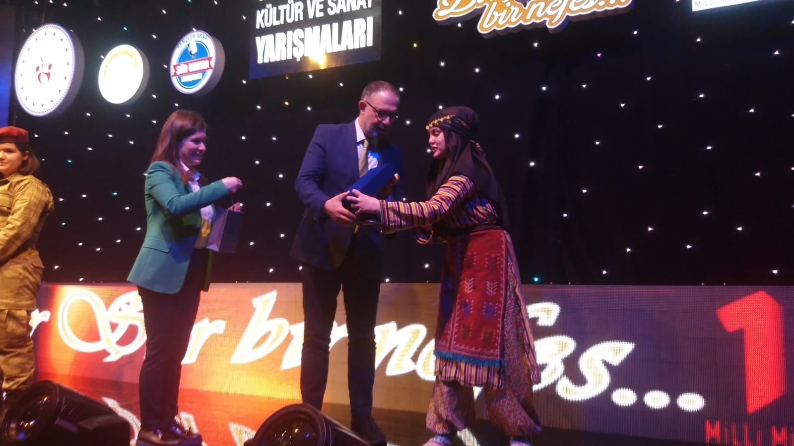 Şiir yarışmasında Türkiye 3.'üncüsü olan Fatma Salur'a ödülünü şiire sesiyle ve muhteşem yorumu ile değer katan İbrahim Sadri tarafından takdim edildi.