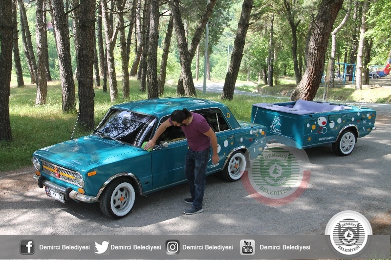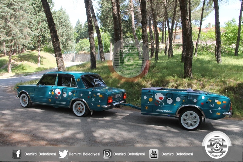 Demirci'de yaşayan mobilya ustasının modifiye edip römork taktıktan sonra 'Hacı Mülayim' adını verdiği nostaljik Murat 124, ilçede düğün ve sünnet yapacakların gözdesi oldu.