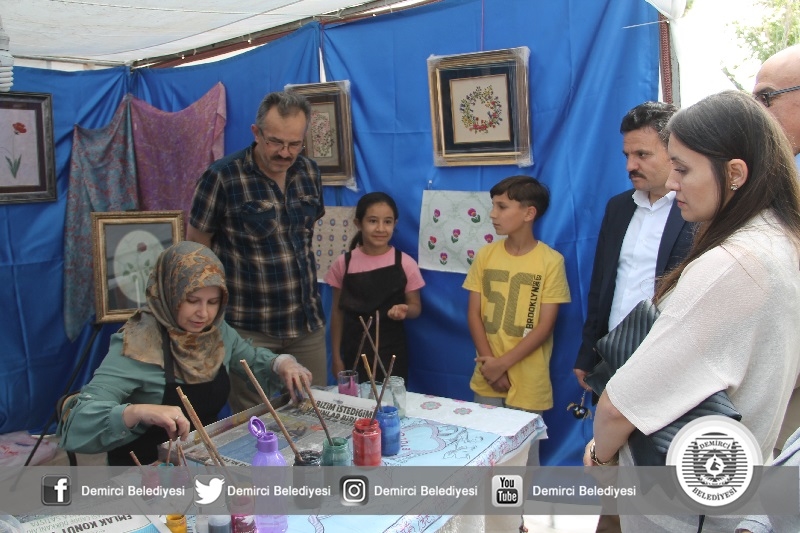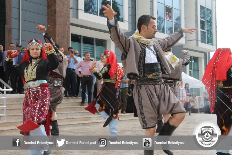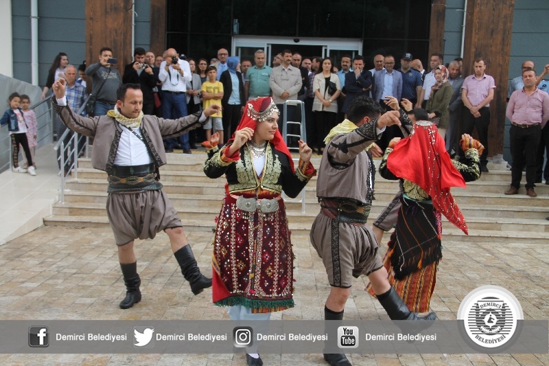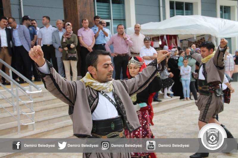 Açılışta Halk Eğitimi Merkezi Müdürlüğü Demirci Akıncıları Halk oyunları ekibi tarafından Kerimoğlu zeybeği ve harmandalı oyunları sergilenirken, katılımcılardan büyük beğeni aldı.