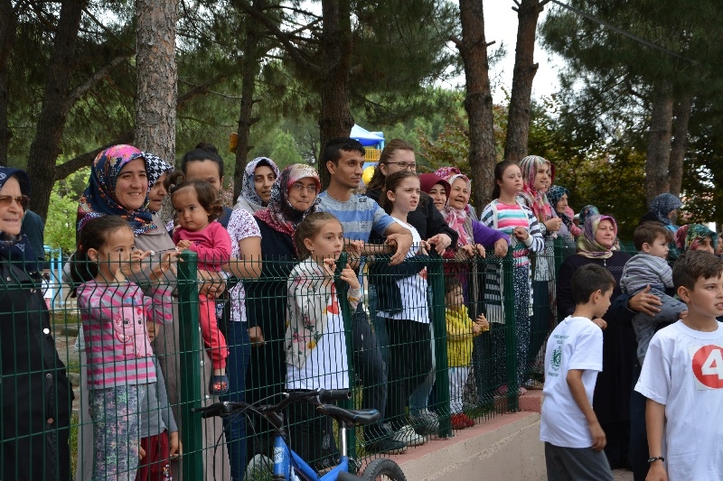 Renkli görüntülere sahne olan yarışmaları izleyen veliler heyecanlı anlar yaşadı.