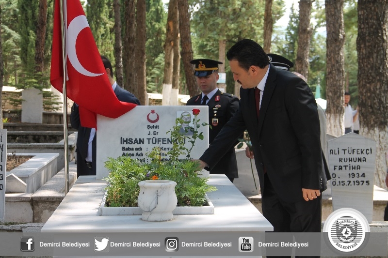 15 Temmuz hain darbe girişiminin 3. yıl dönümünde Demokrasi ve Milli Birlik etkinlikleri çerçevesinde Demirci Kaymakamı Mutlu Akyol, Belediye Başkanı Selami Selçuk, Cumhuriyet Başsavcısı Hakan Erdoğan, Şehit Aileleri, Gaziler, AK Parti İlçe Başkanı Mehmet Acar, MHP İlçe Başkanı Ümit Kanyılmaz ve İlçe protokolü İlçe kabristanlığında program düzenlendi.