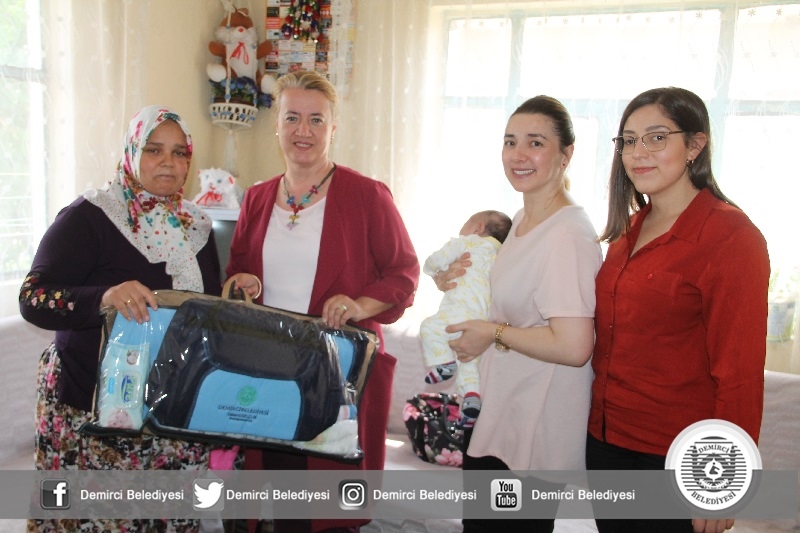 Demirci Belediyesi, 5 yılda bebek sevinci yaşayan yaklaşık BİN 300 aileye yeni doğan bebek seti hediye etti.