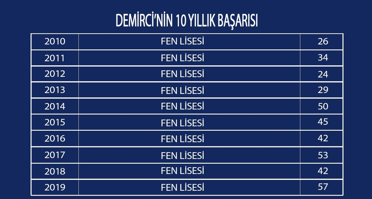 DEMİRCİ'NİN 10 YILLIK BAŞARISI