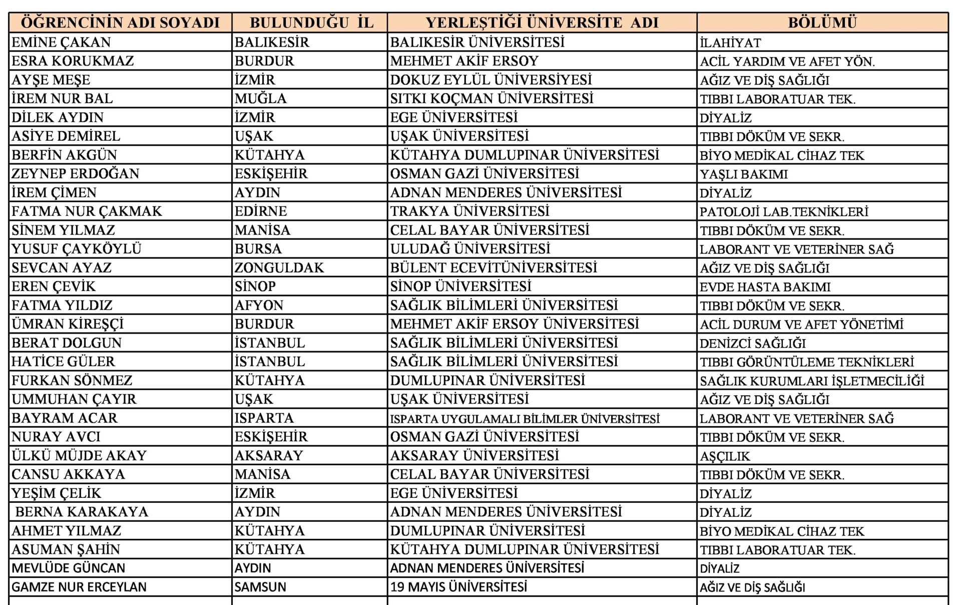 Bizlerde sizler için Gevher Nesibe Mesleki ve Teknik Anadolu Lisesi'nce yerleştirlen öğreciler ve isimleri ;