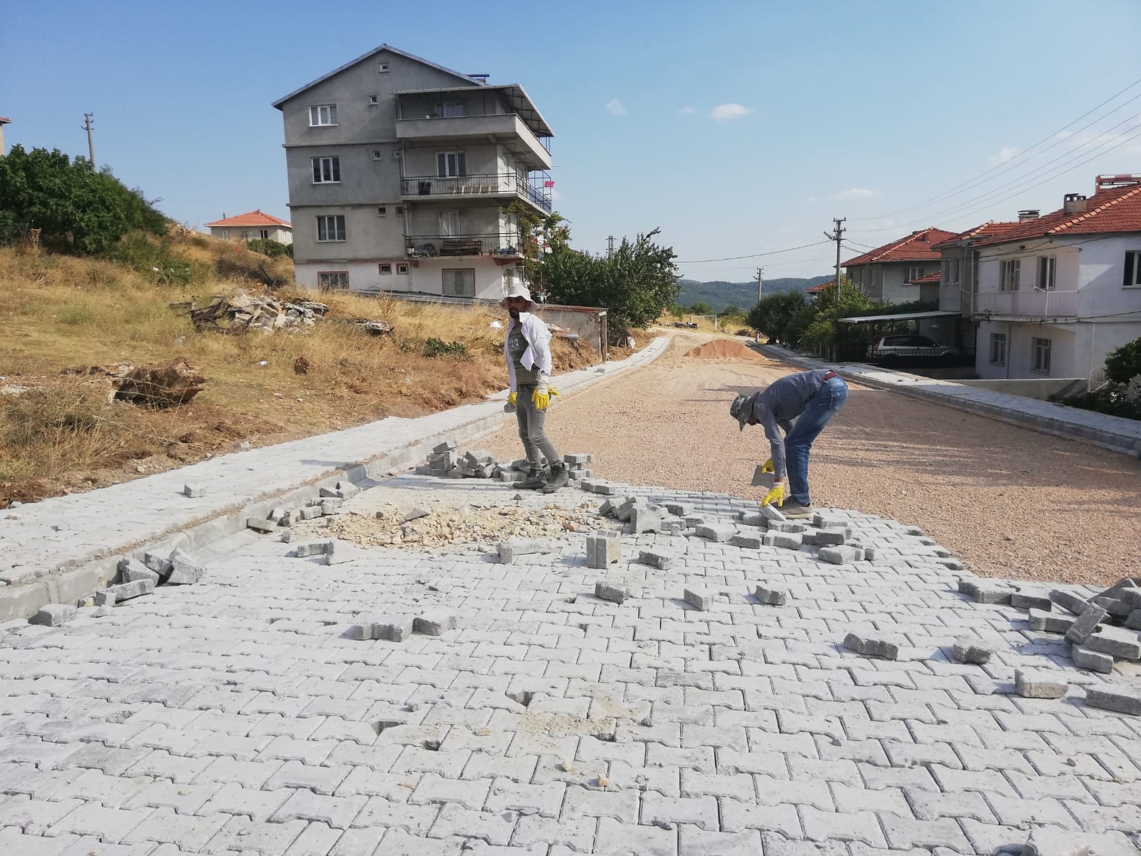 Sokak yoluna yağmurlama oluğu döşenmesinin ardından yolun tesviyesi yapılarak bordür düzenlemesi ve parke taşı döşemesi yapımına başlandı. Yine Anadolu Kır Düğün Salonun sağ tarafındaki alana yine fen işleri ekiplerince yol tesviyesi yapılarak, kilit parke taşı döşemesi yapılacak.