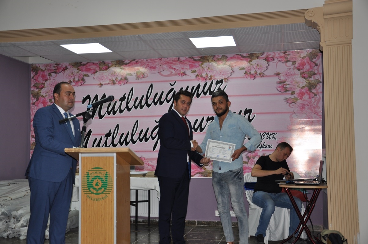 Konuşmaların ardından Ahi Evran Mesleki ve Teknik Anadolu Lisesi'nce hazırlanan Kalfalık ve Ustalık belgeleri İlçe Jandarma Komutanı Teğmen Murat İnce, İlçe Emniyet Müdürü Mesut Muhammet Solak, Ahi Evran Mesleki ve Teknik Anadolu Lisesi Müdürü Bilal Çetinkaya, Manisa Büyükşehir Belediyesi Demirci İlçe Kordinatörü Gökhan Aslan ve İlçe Milli Eğitim Müdürü Yüksek Kocabaş tarafından verildi.
