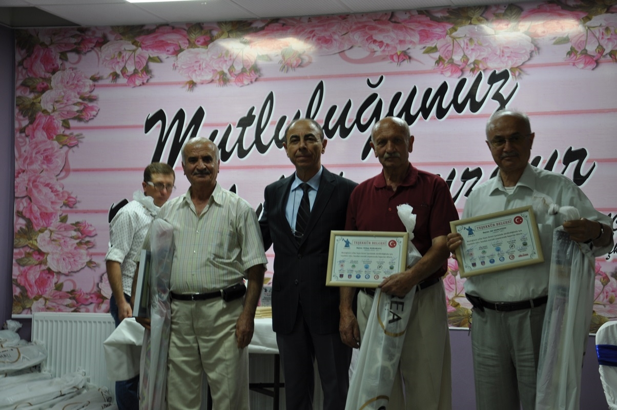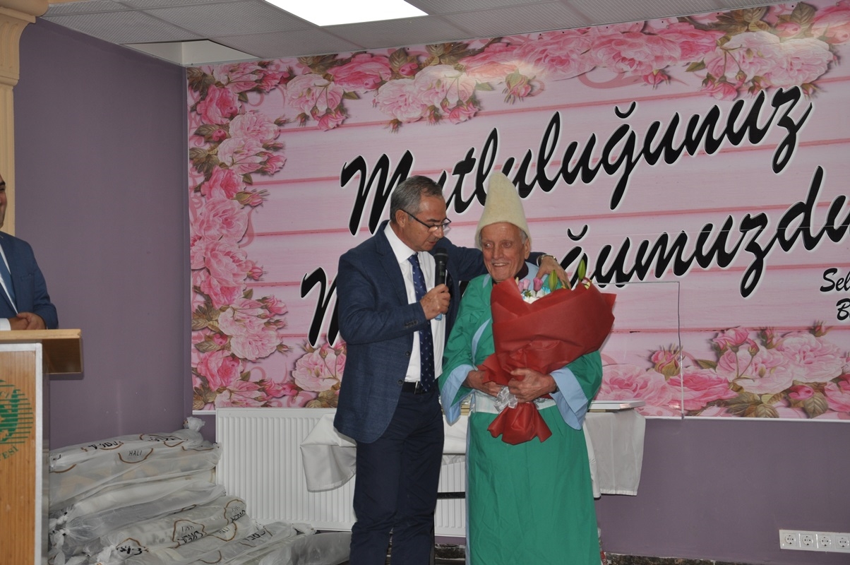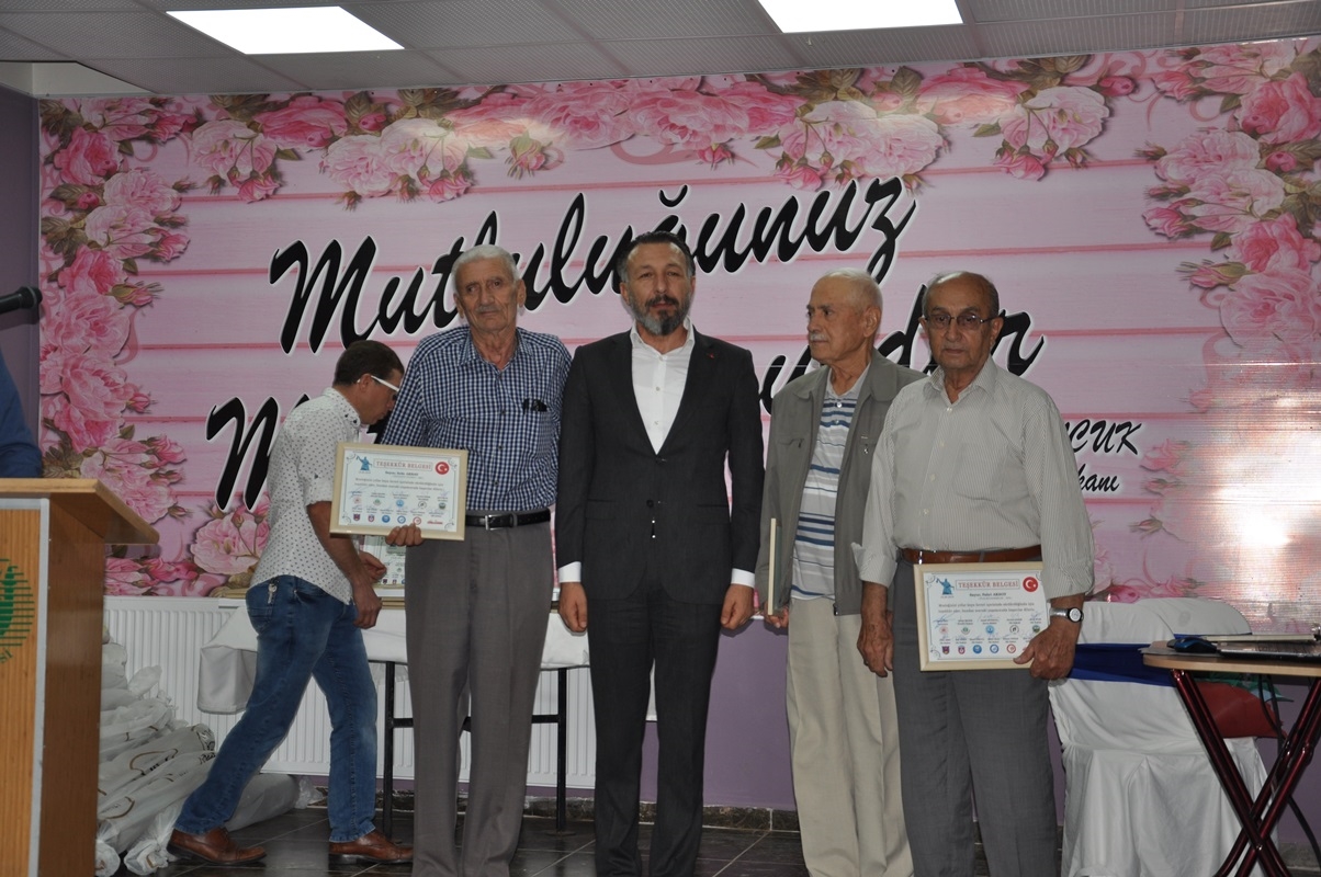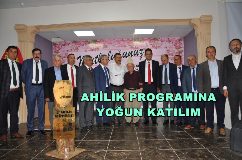 Ahi İhsan Akgün'e MESOB Başkanı Hasan Geriter tarafından çiçek, Belediye Başkanı Selami Selçuk tarafından Ahi belgesi ve Kaymakam Adem Kaya tarafından da plaketi takdim edildi.