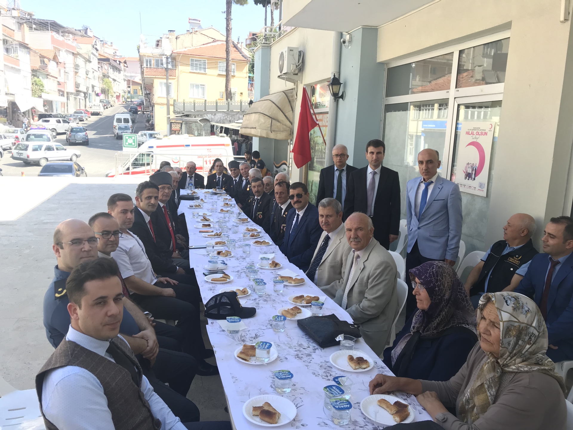 Törenin ardından Kaymakam Adem Kaya, Belediye Başkanı Selami Selçuk ve beraberindeki ilçe protokolü Demirci Muharip Gaziler derneğini ziyaret ederek, günlerini kutladılar.