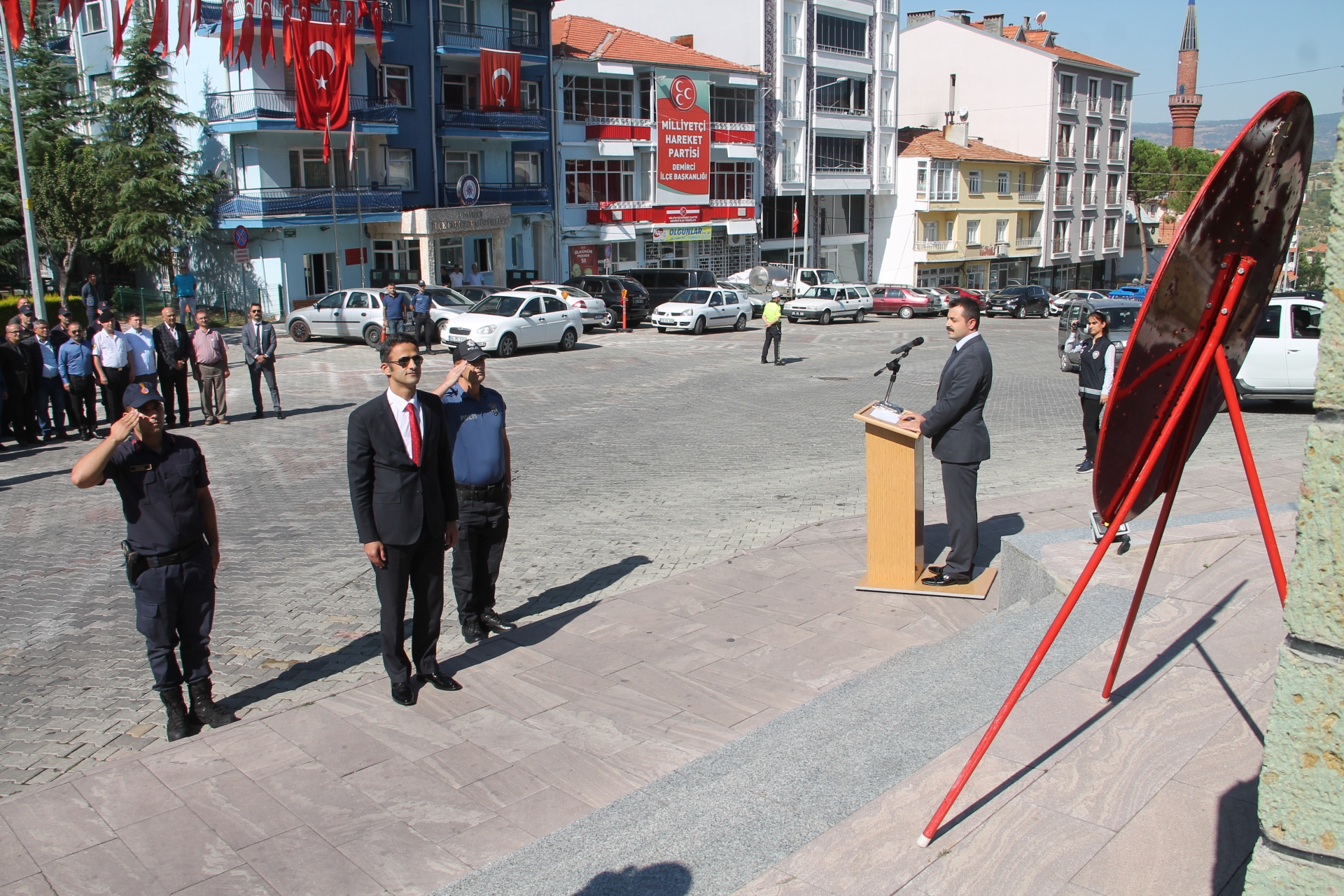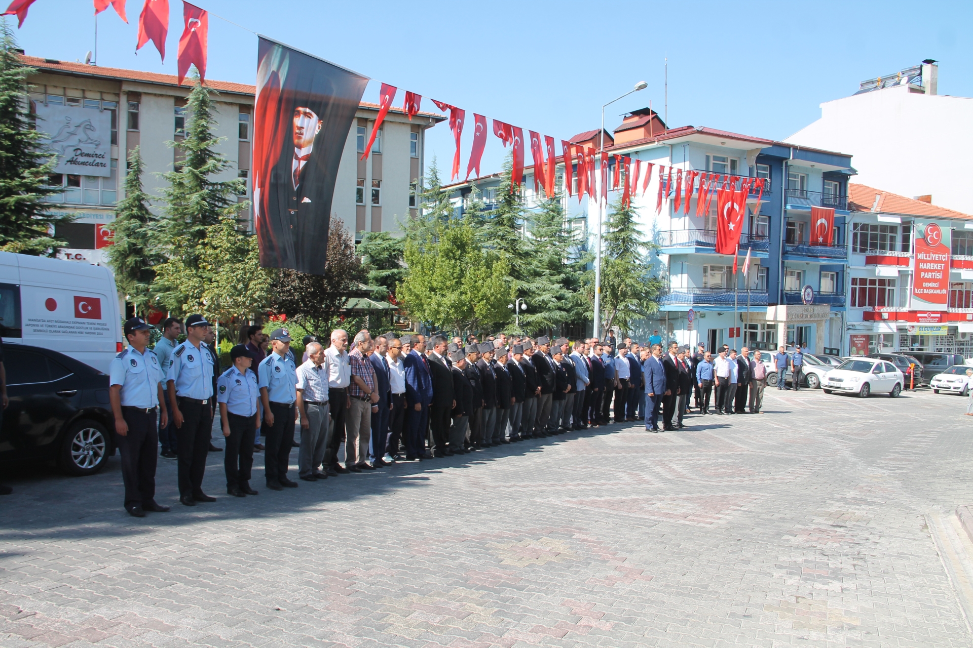 Düzenlenen törene Demirci Kaymakamı Adem Kaya, Belediye Başkan Selami Selçuk, Cumhuriyet Başsavcısı Hakan Erdoğan, Muharip Gaziler Derneği Başkanı Kamil Aydemir, İlçe Jandarma Komutanı Teğmen Murat İnce, Gaziler, İlçe Protokolü, çok sayıda vatandaş katıldı.