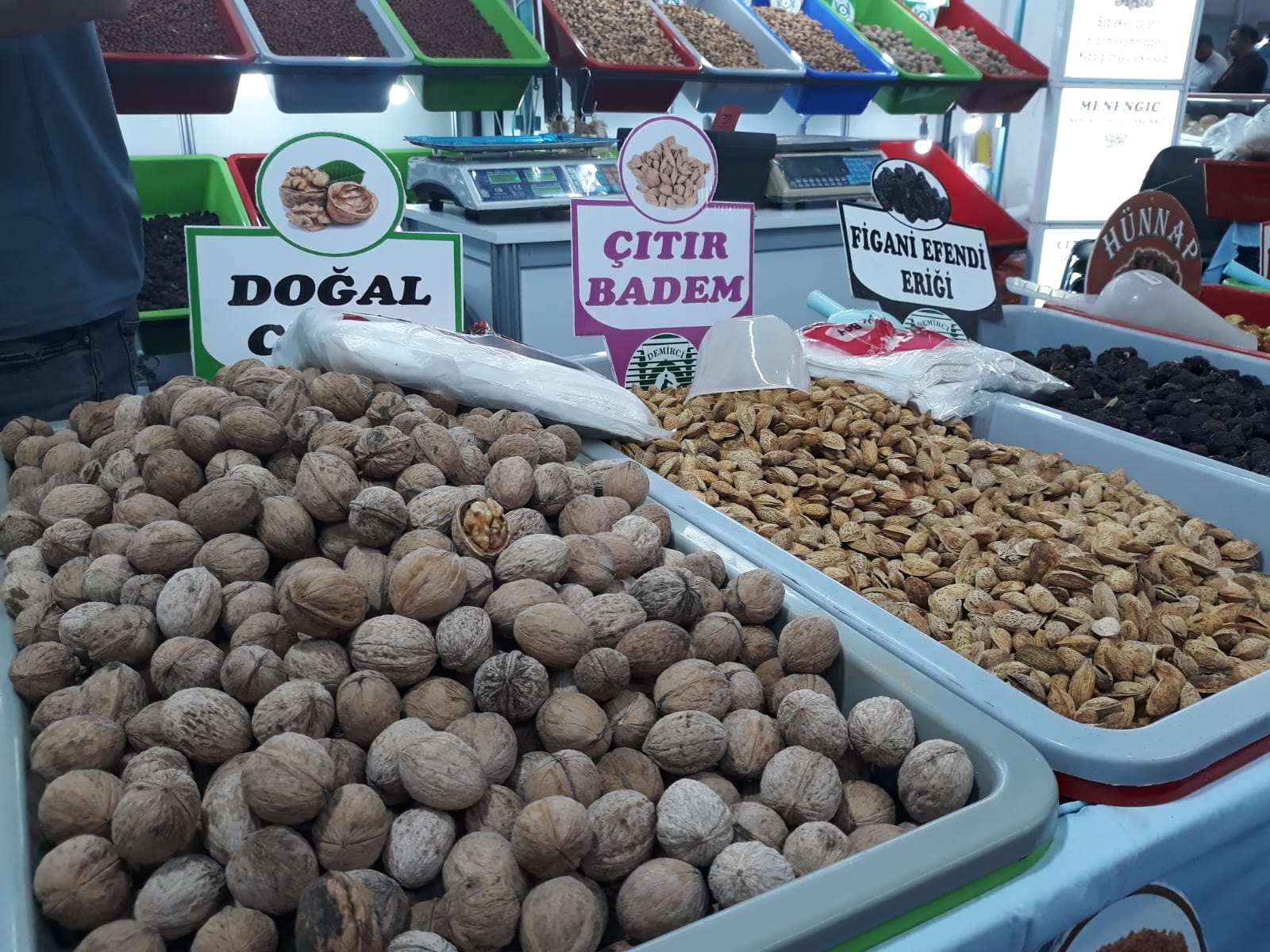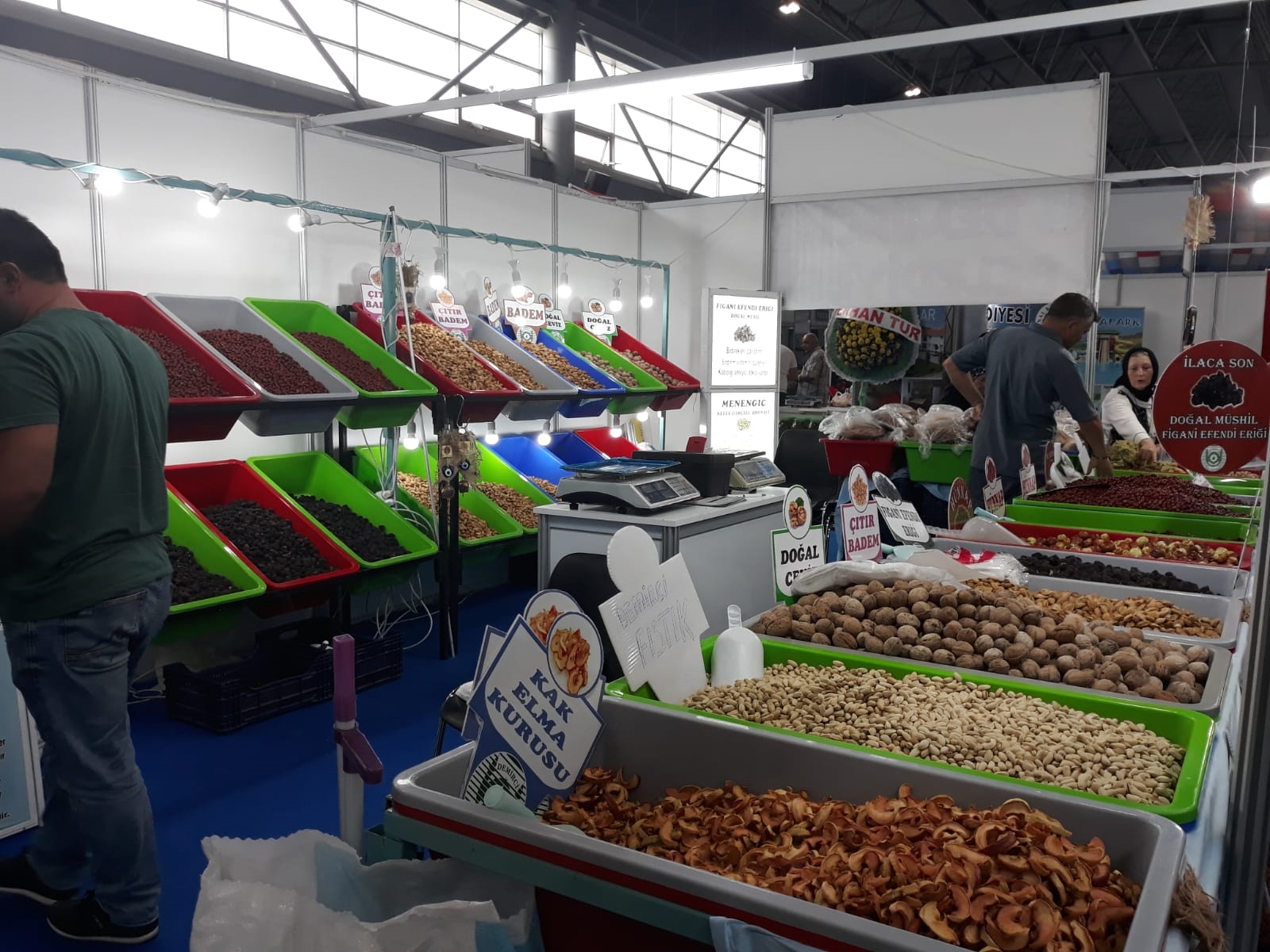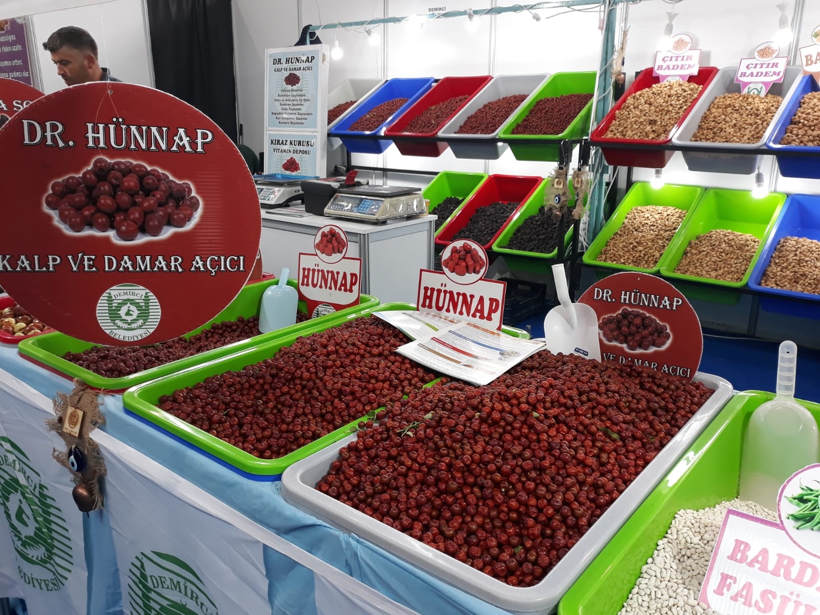 Demirci'de yetişen başta hünnap olmak üzere birçok organik tarım ürünü Demirci Belediyesi'nin standında yer alıyor.
