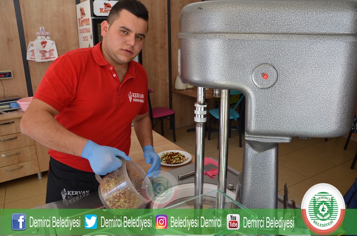 Dondurmacı Mustafa Aymergen, 35 yıldır babamın sürdürerek bugünlere getirdiği dondurmacılık mesleğini 9 yıldır ben yapıyorum. İşyerimizde 15 çeşit dondurma ve tatlı imalatı yapıyoruz. Demirci'nin meşhur şifalı hünnapından dondurma yapalım istedik. Kolonyası ve lokumu daha önce yapıldı. Bizde tamamen kendi üretimimiz olan dondurmadan yapalım istedil" dedi.