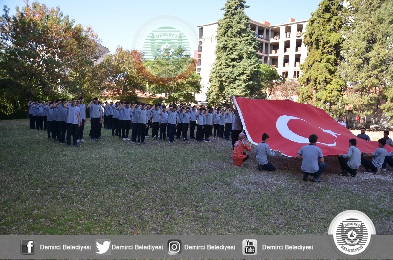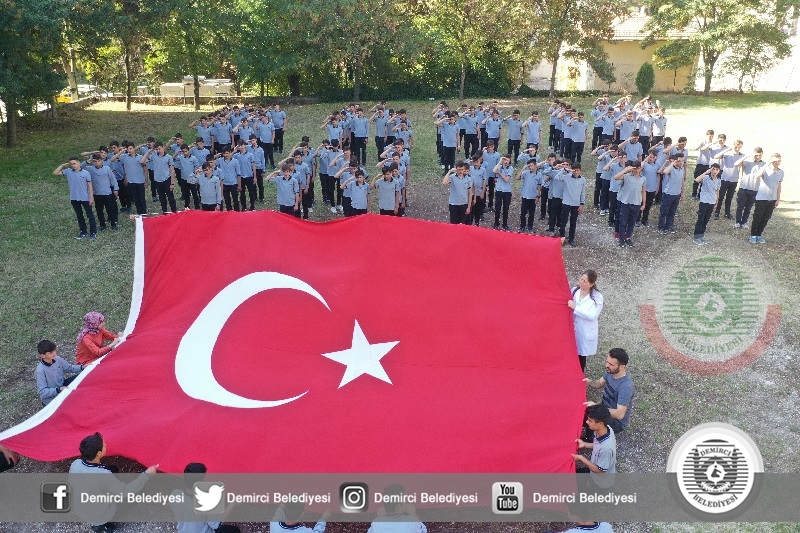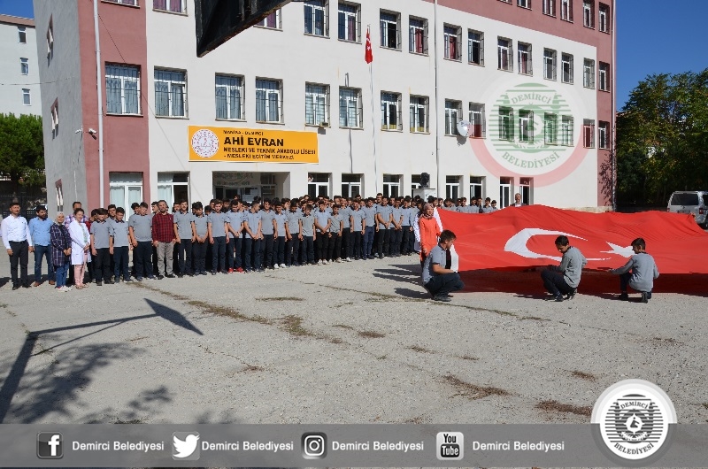 Demirci Ahi Evran Mesleki ve Teknik Anadolu Lisesi öğrencileri, " Barış Pınarı Harekatı "'na destek okul bahçelerinde hazırladıkları koreografi gövdeleri ile Barış Pınarı yazarak dev Türk bayrağı açarak harekata destek verdiler.