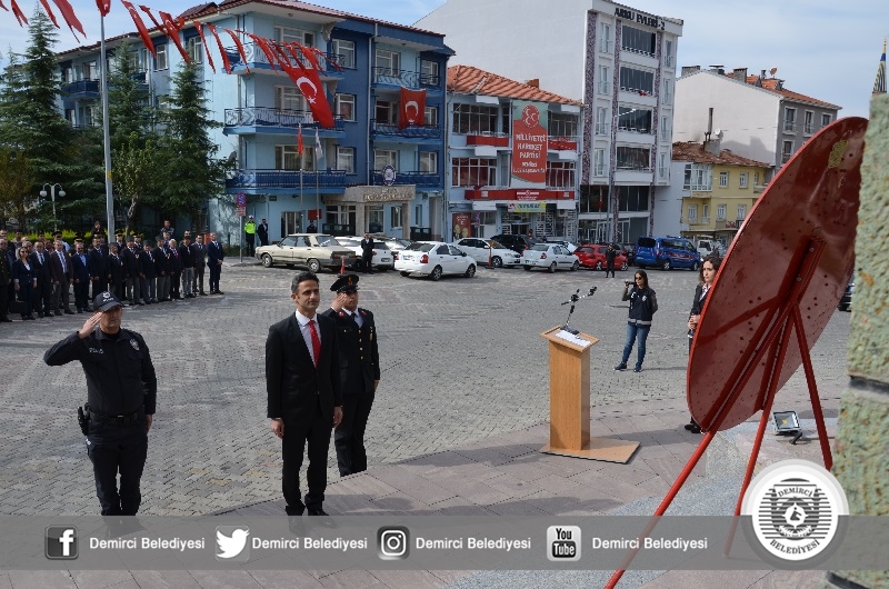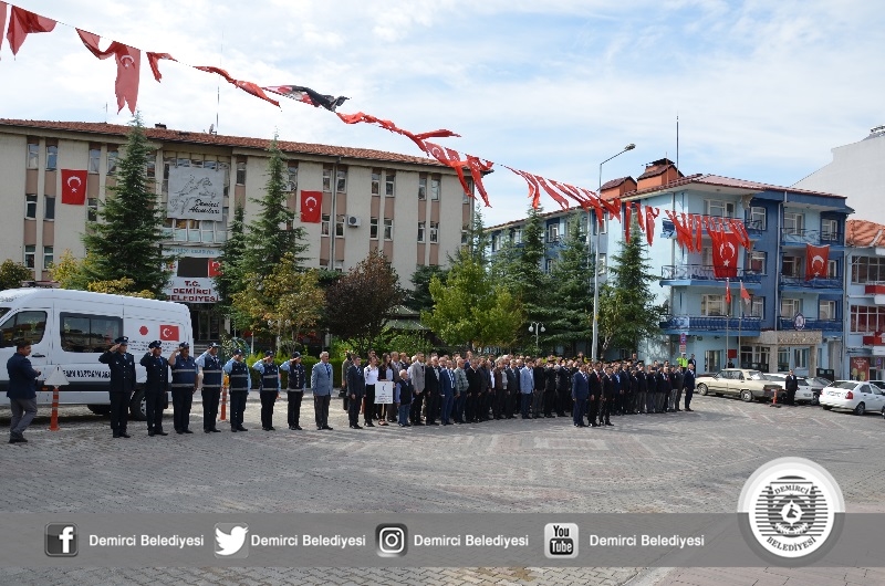 28 Ekim 2019 Pazartesi günü saat 13.00'da Belediye hizmet binası önünde bulunan Atatürk Anıtı önünde düzenlenen çelenk sunma törenine Demirci Kaymakamı Adem Kaya, Belediye Başkanı Selami Selçuk, Demirci Cumhuriyet Başsavcısı Hakan Erdoğan, İlçe protokolü, siyasi partilerin ilçe başkanları, Okul Müdürleri ile öğretmenler, öğrenciler ve vatandaşlar katıldı.