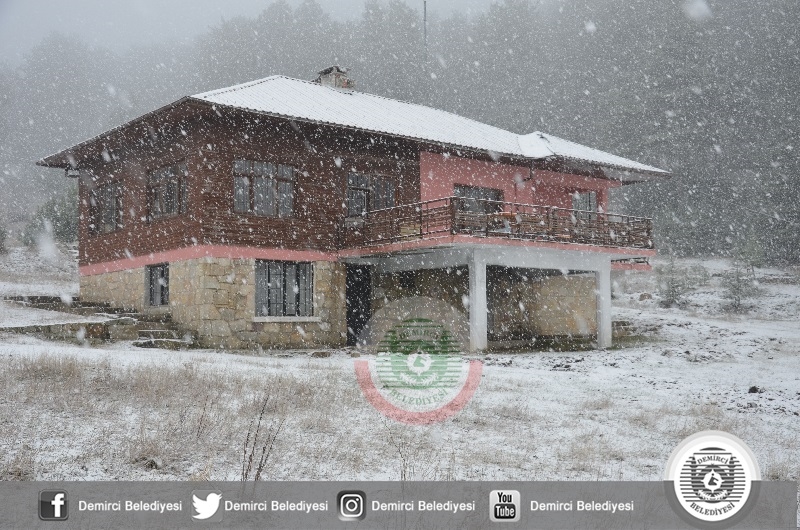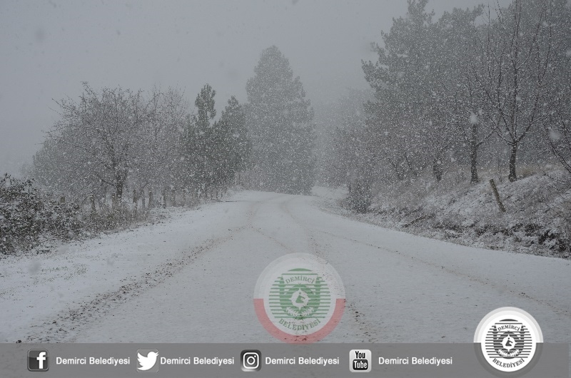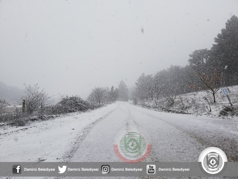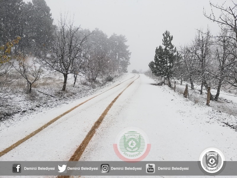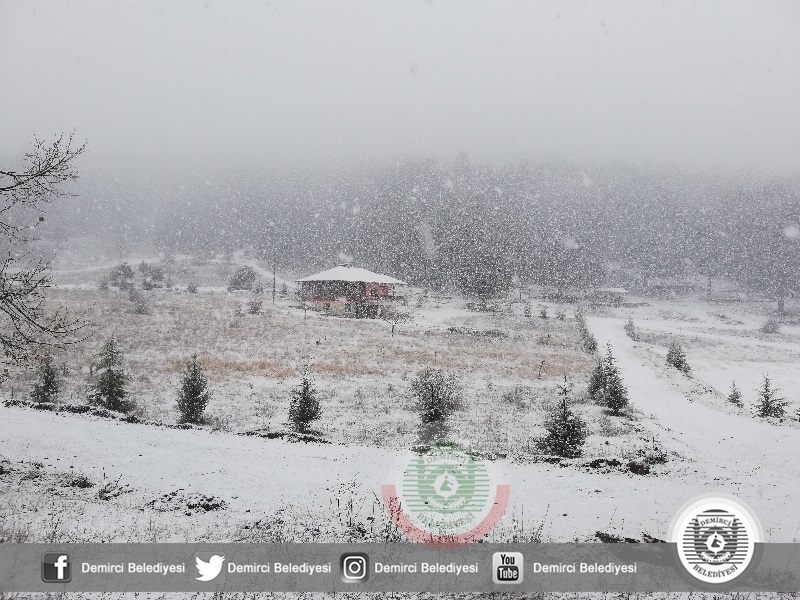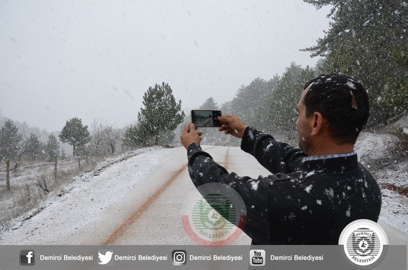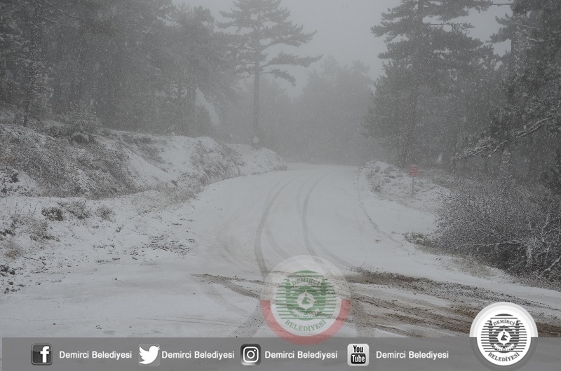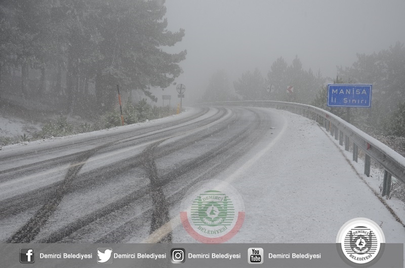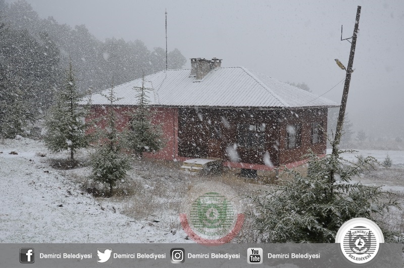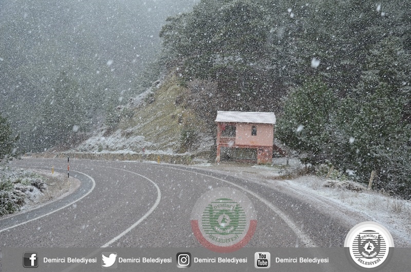 DEMİRCİ'DE YAĞMUR, YÜKSEKLERDE KAR. KIŞ GELDİ