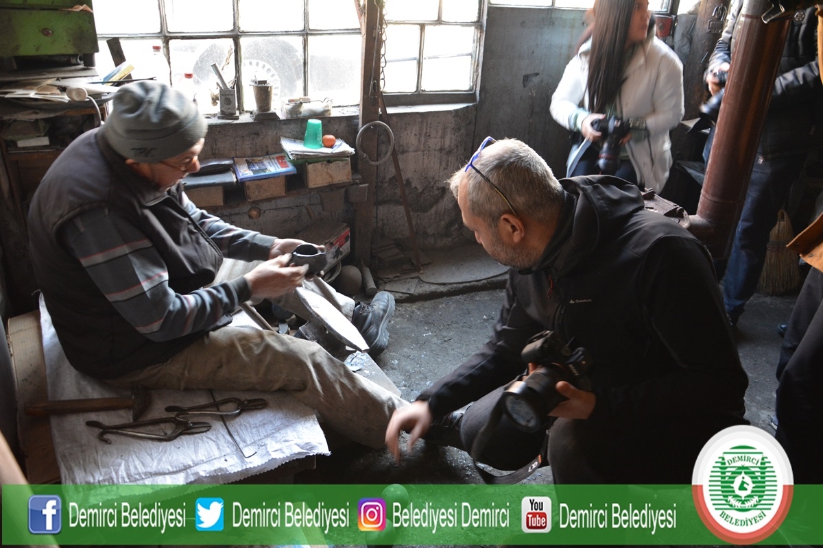 Ziyaretleri kapsamında Demirci'yi de ziyaret eden fotoğraf sanatçılara, Demirci Belediyesi Kent Konseyi Başkanı Kenan Karaman ve Demircili Fotoğrafçı Nurullah Çetintaş'ta eşlik ederken, İlçedeki semerci ustası, çancı, el halı atölyeleri, ilçenin köylü pazarını ve tarihi görsel mekanlarını gezerek, fotoğraf çektiler.