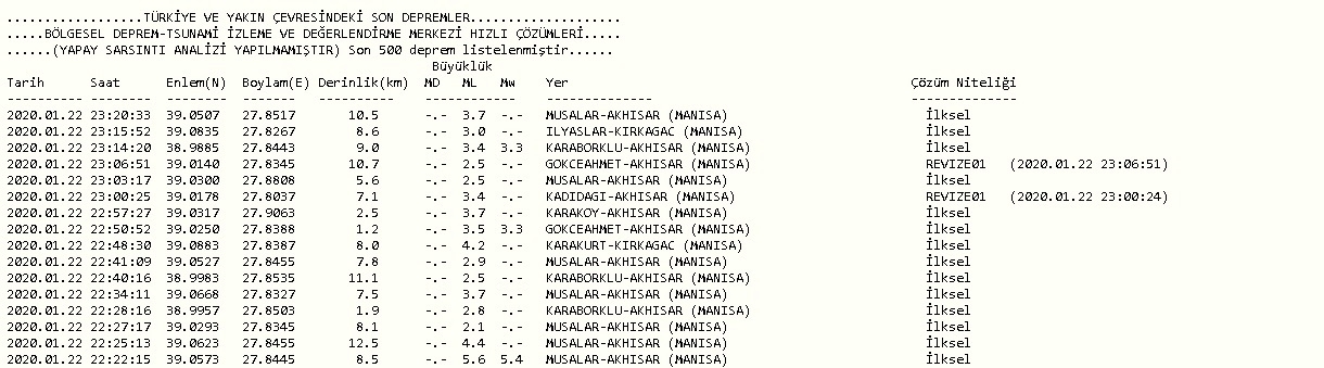 Afet ve Acil Durum Yönetimi Başkanlığının (AFAD) internet sitesinde yer alan bilgiye göre, Akhisar ilçesinde saat 22.22'de 5,4 büyüklüğünde deprem kaydedildi.