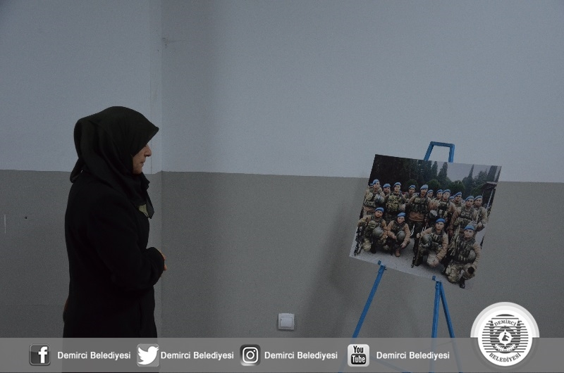 Konferans salonu girişine Şehit Astsubay Uğur Palancı'nın görevi esnasında çekilen fotoğraflarından oluşan sergi Şehitin Anne ve Babası tarafından ziyaret edildi.