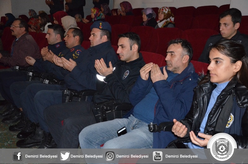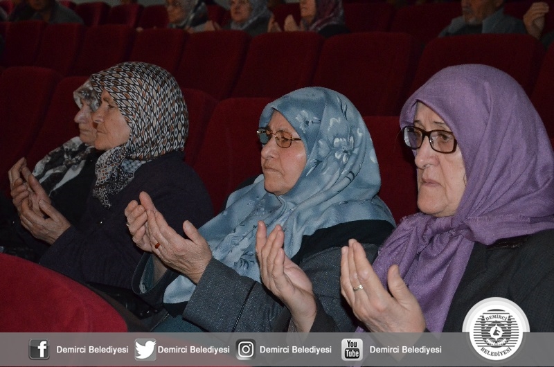 Demirci İlçe Müftülüğünce düzenlenen mevlid-i şerif programında Şehitler için Kuran-ı Kerim okunurken, İlçe Müftüsü Mustafa Kocagöz tarafından da dua yapıldı.
