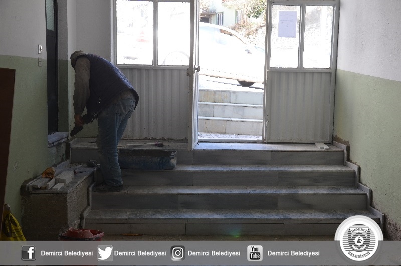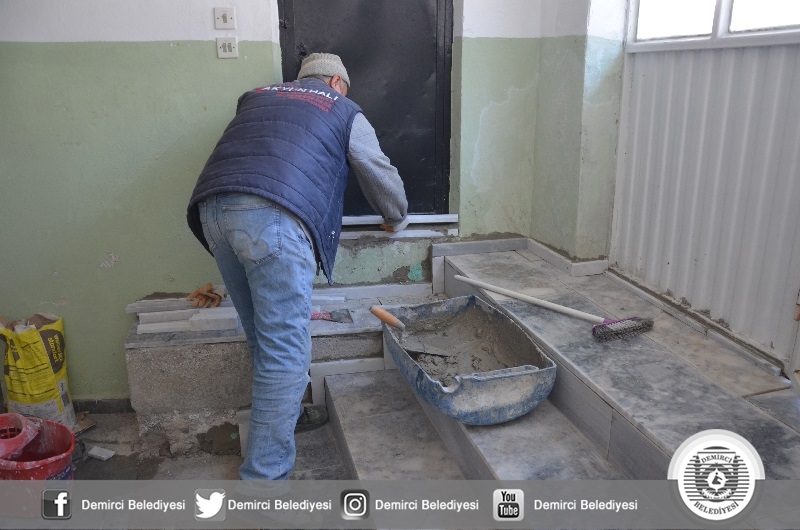 Cami girişindeki eski merdivenler ve abdest alınan şadırvanlarda yenileniyor.