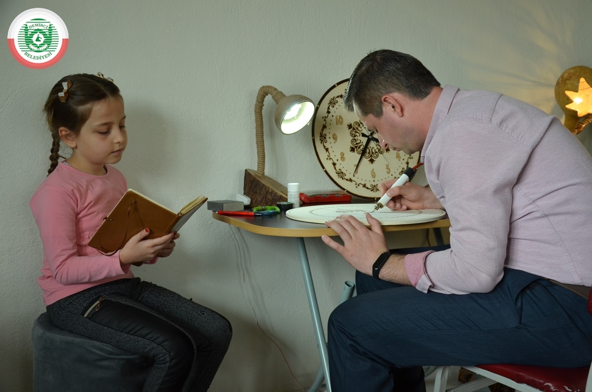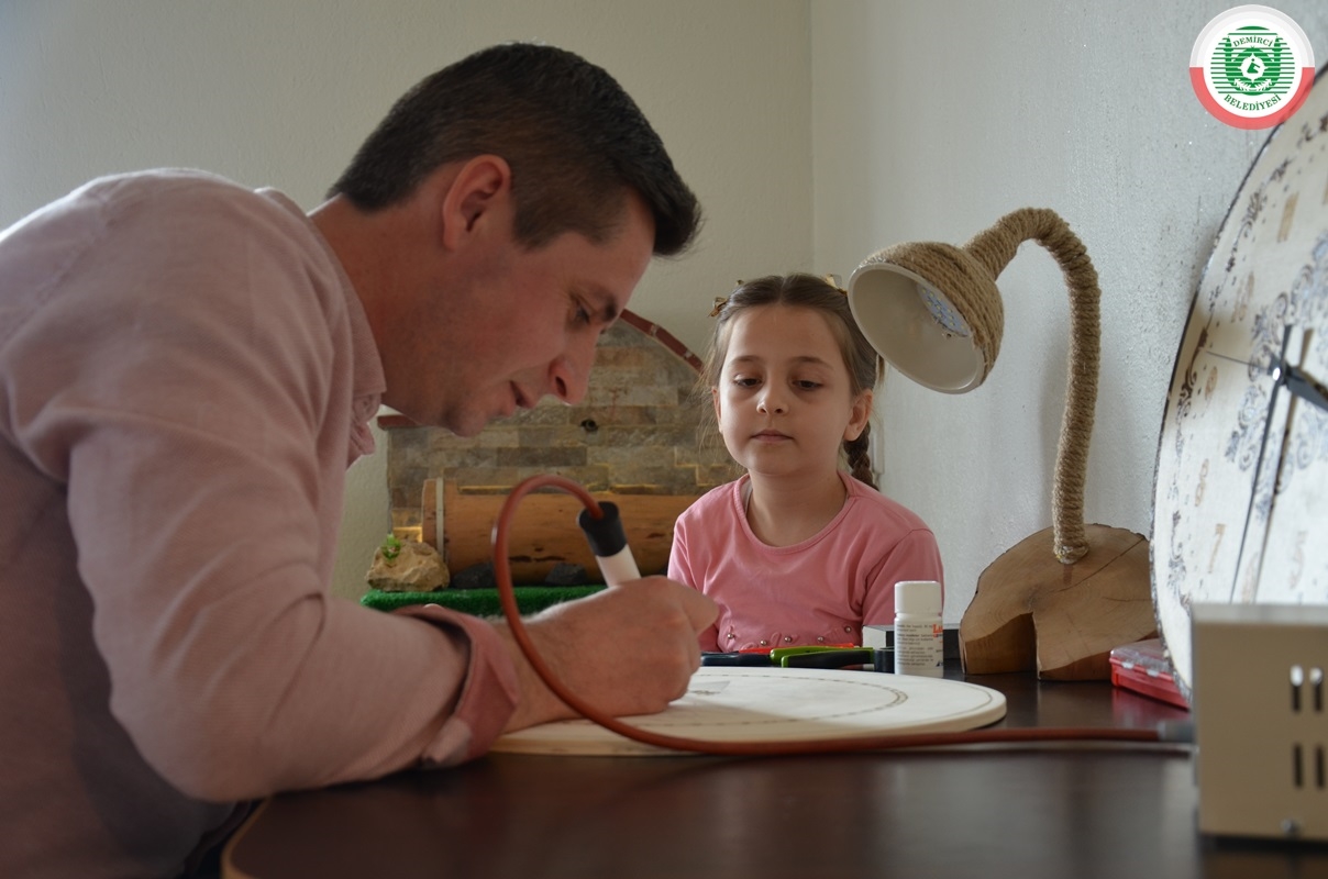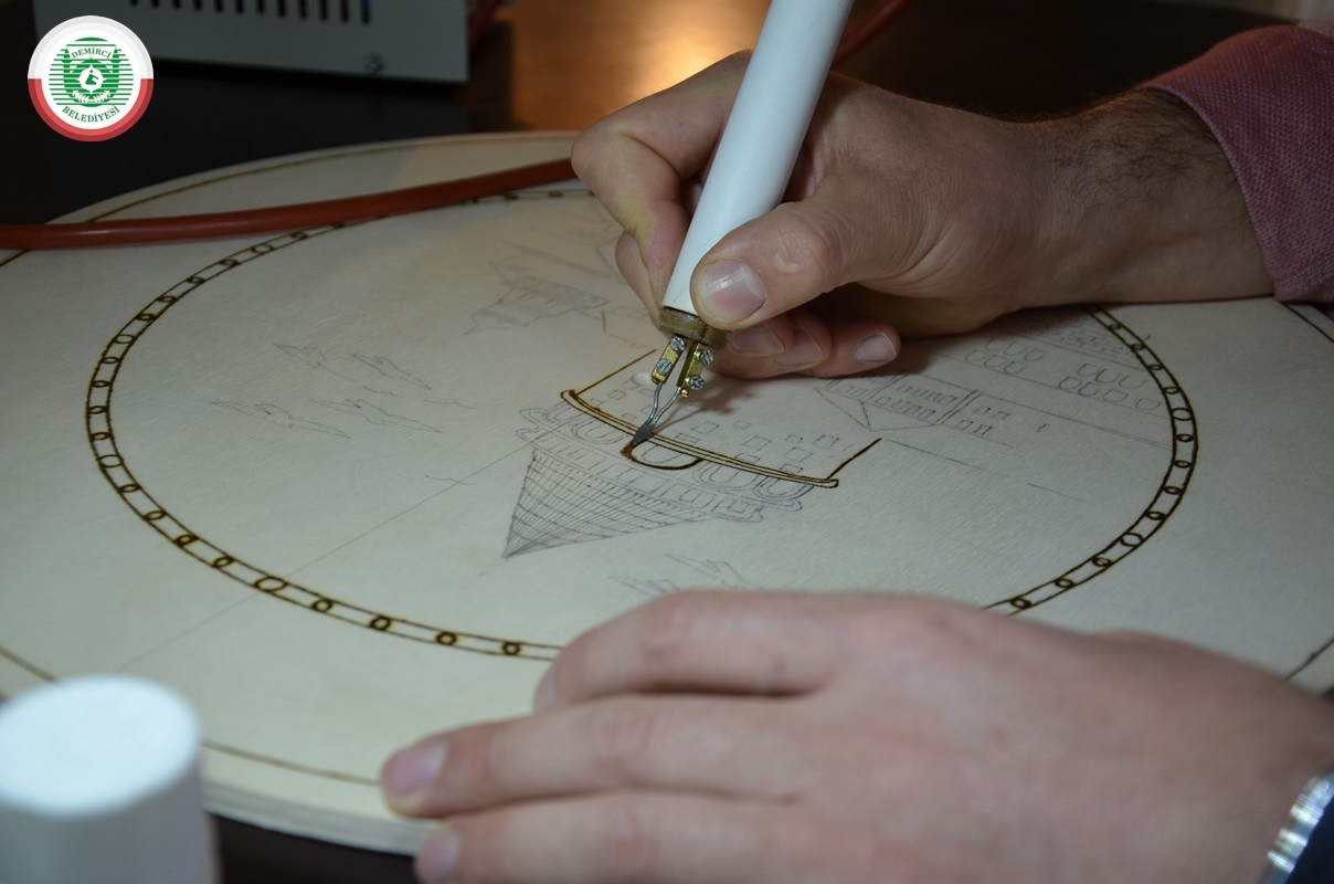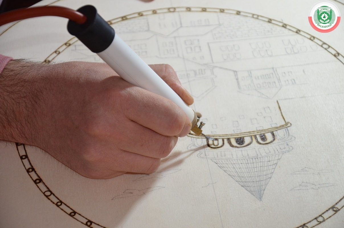 İlçeye bağlı Bardakçı Mahallesi'nde 8 yıldır imam hatip olarak görev yapan 3 çocuk babası Muharrem Gümüş, boş zamanlarını değerlendirmek amaçlı ahşap yakmada bazen hazır motiflerin, bazen de kendi çizimlerinin üzerine ahşap yakma tekniği uyguluyor.