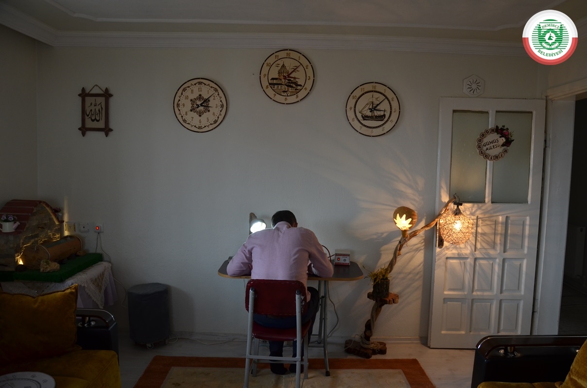 Tasarladığı işlemelerden kapı süsleri, saatler, çeşme, masa lambası, tablo gibi aksesuarlar yapan imam Gümüş, büyük bir özveri ve emek harcayarak hazırladığı eserlerini, yeniden buluşmayı özlemle beklediği cami cemaatine vermek istiyor.